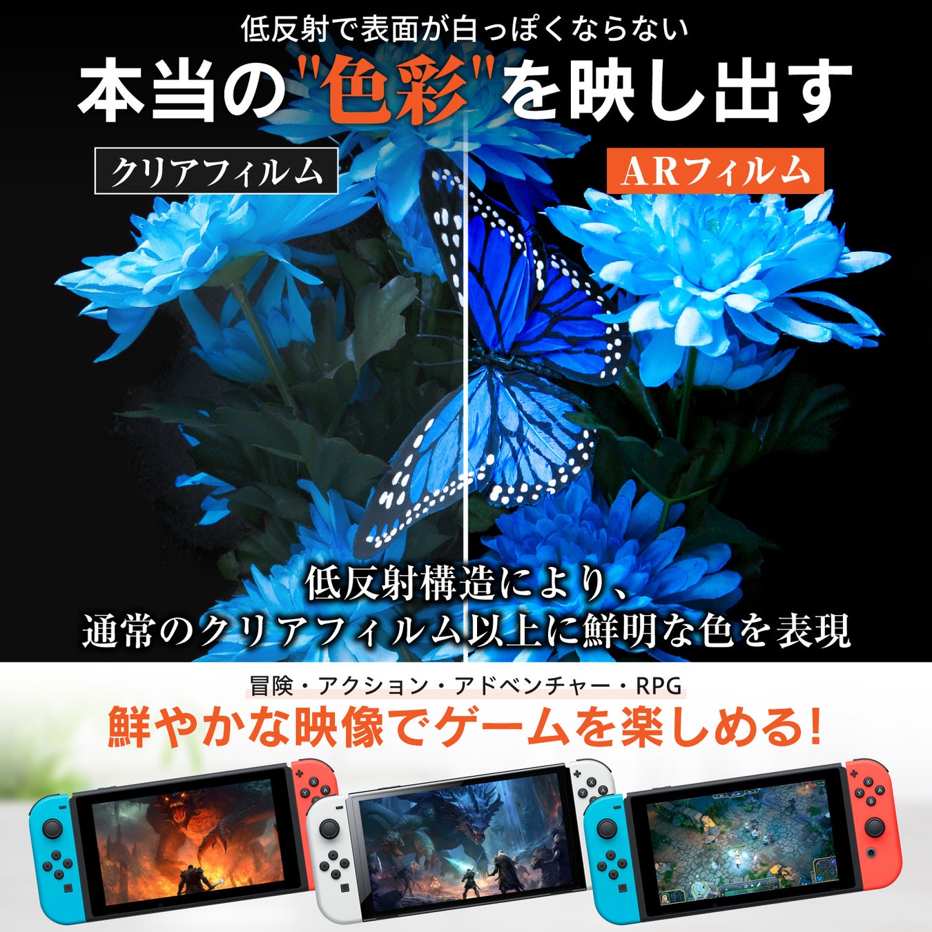 Switch用「ハイグレードARフィルム」発売!画面を保護しながら"クリアフィルム以上"の鮮明さを実現した超透明フィルム。スイッチの映像そのままに傷から保護したい方にオススメの光沢(グレア)タイプ