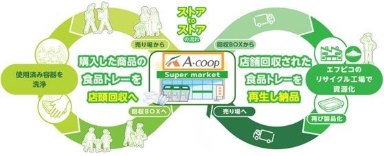 株式会社エフピコ(代表取締役会長:佐藤 守正、以下「エフピコ」)とJA全農Aコープ株式会社(代表取締役社長:宗村 達夫、以下「Aコープ」)は協働し、東日本エリア(神奈川、群馬エリア)の28店舗において、現在進めている店舗で回収された使用済み食品トレー及び使用済みペットボトルを新たな食品トレー・透明容器に生まれ変わらせ、再びお店で使用する「ストアtoストア」の水平リサイクルを促進する取り組みを、更に拡大いたします。