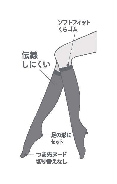 ゆったりしたソフトゴムと足形セット仕様を採用し、脚にフィットしつつ快適に着用できます。