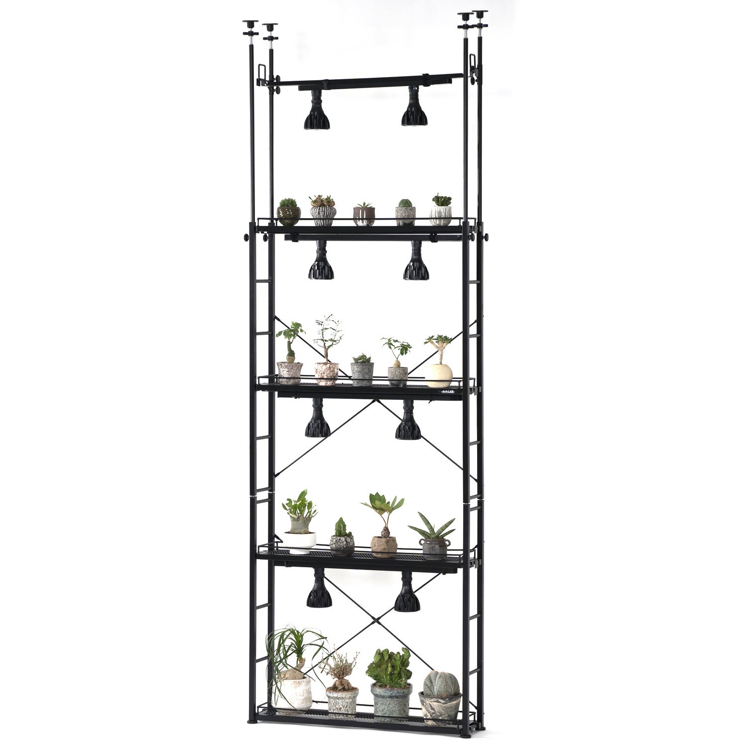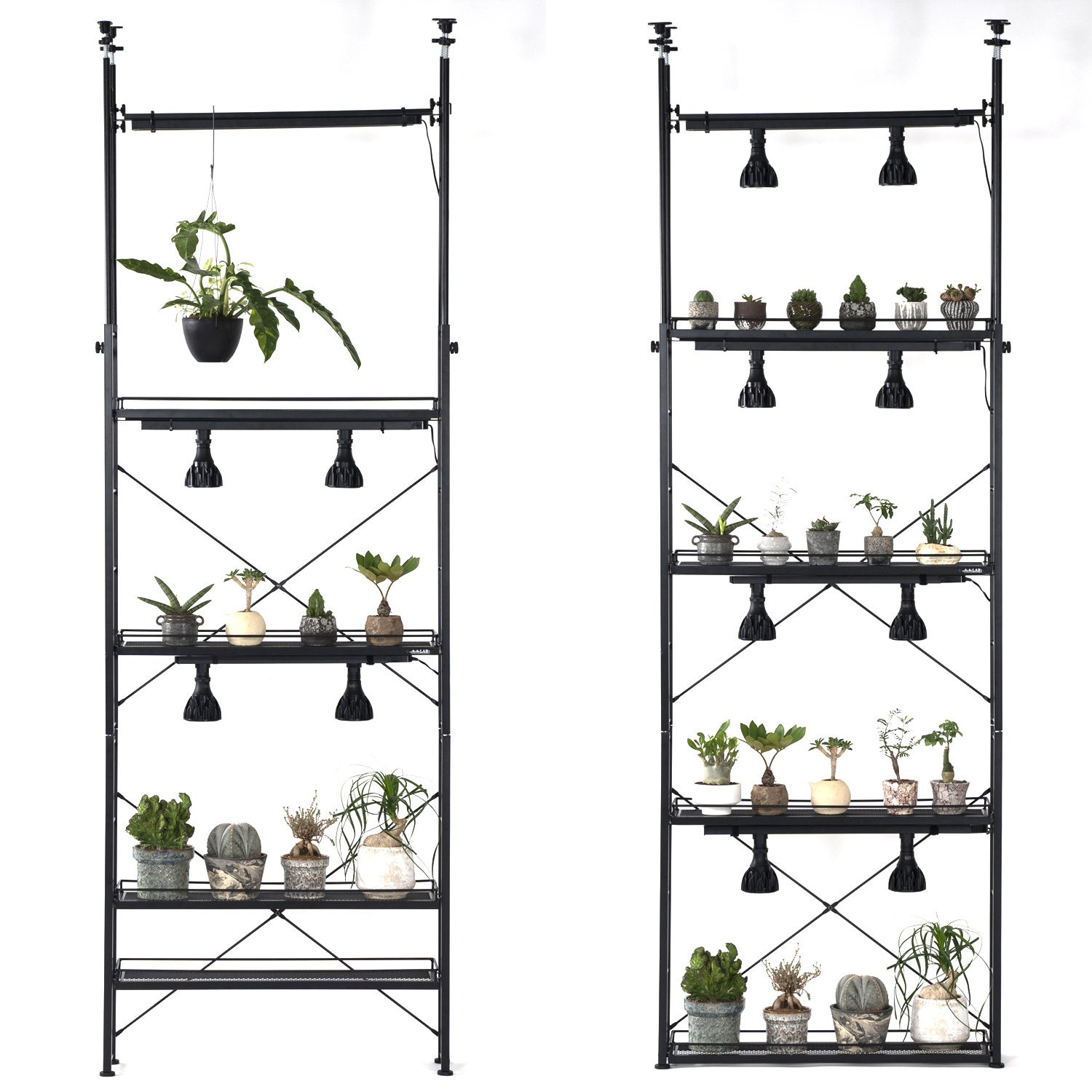 「ビザールプランツラック LPR-800」が奥行き37cmなのに対し、スリムタイプは奥行き20cmの薄型設計。4~5号鉢を並べるのに最適なサイズ感で、無駄なく省スペースに設置できます。床面積をほぼ使わずに、縦の空間を活かして壁面全てを植物のための大容量育成スペースに変えることが可能です。固定にネジの打ち込みを必要としないつっぱり式で、賃貸OKなのも嬉しいポイント。ラックを2台並べて横連結することもでき、コレクションが更に増えても大丈夫!植物の数やお部屋のレイアウトに応じて、簡単かつ自由に拡張できます。尽きることのない収集欲に応え、理想の壁面緑化を継続的にサポートします。