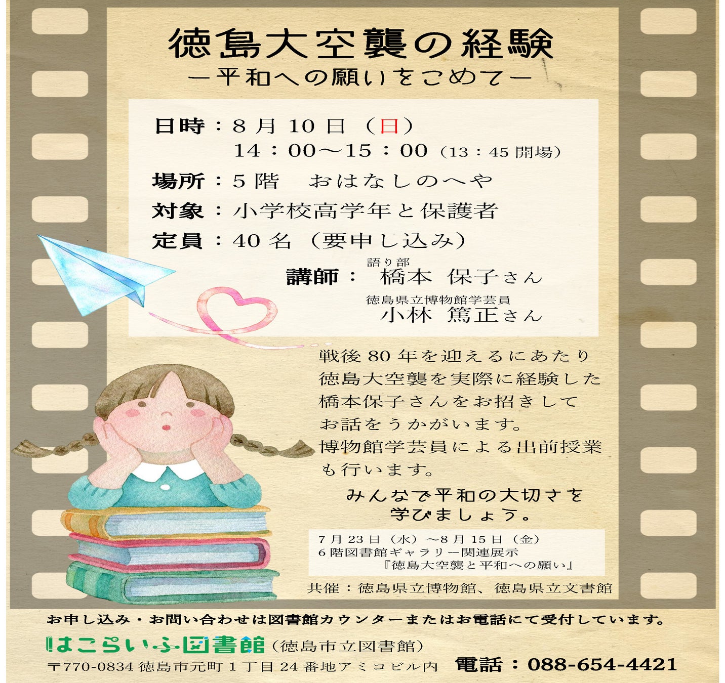 ◆子ども向け講座「徳島大空襲の経験-平和への願いをこめて-」