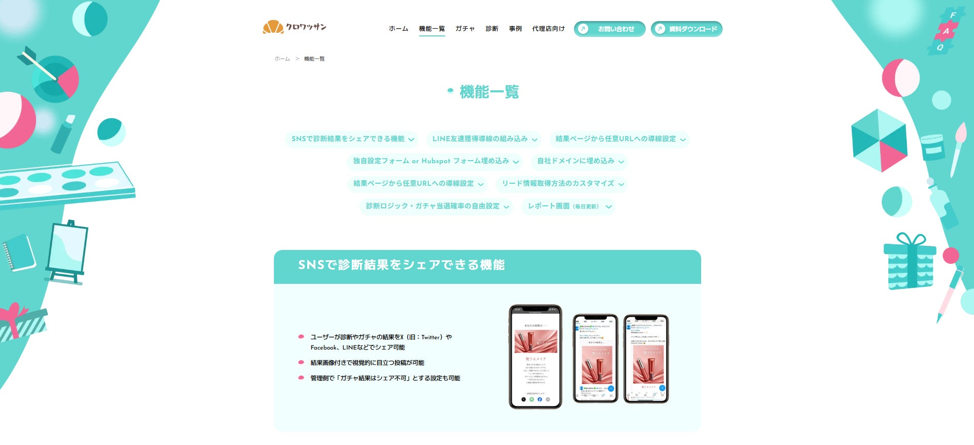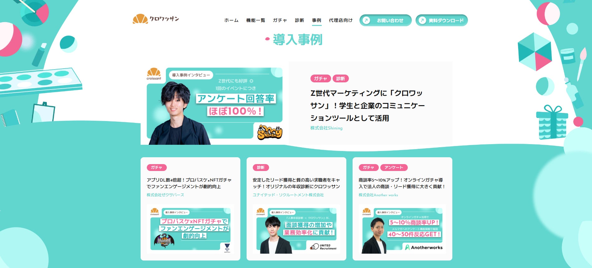 「クロワッサン」は、企業向けにオンラインガチャ・診断コンテンツを作成できるツールです。