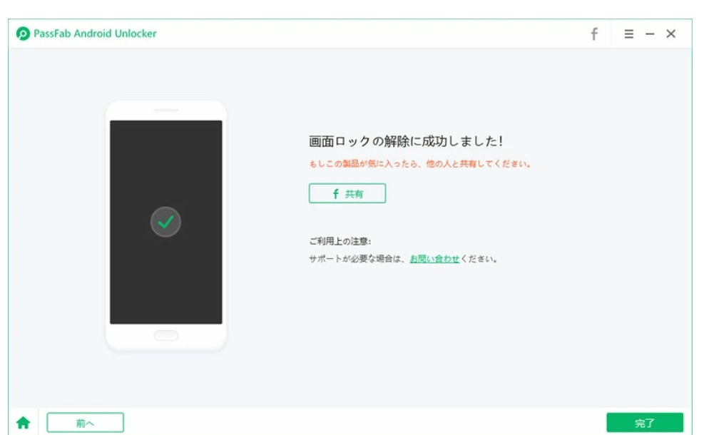 Step5:完了する「画面ロックパスワードが正常に削除されました」と表示される。この後、チュートリアルに沿ってセットアップをすることで再度デバイスを設定できます。