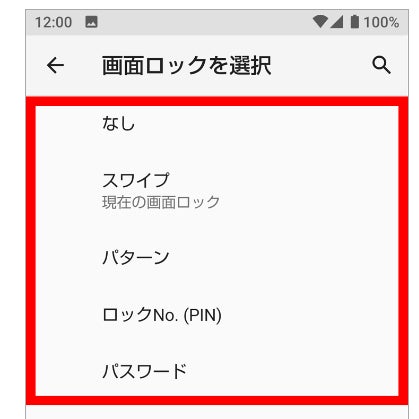 Step2:次に「セキュリティ」へ進み「画面ロック」を選択。