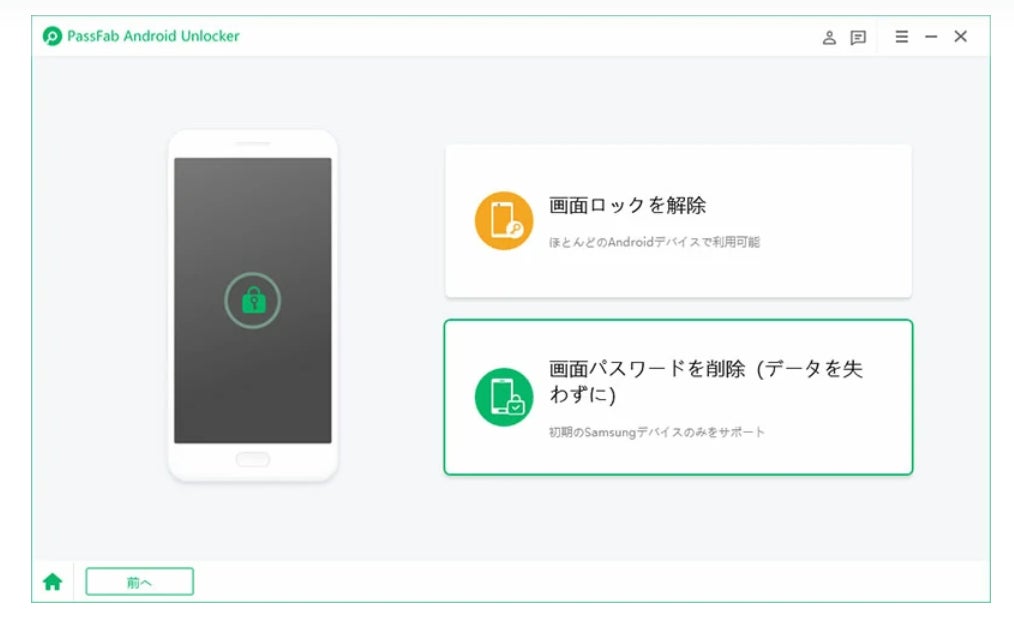 Step2: PassFab Android Unlockに以下の画面が表示されたら「画面ロックを解除」を選択。
