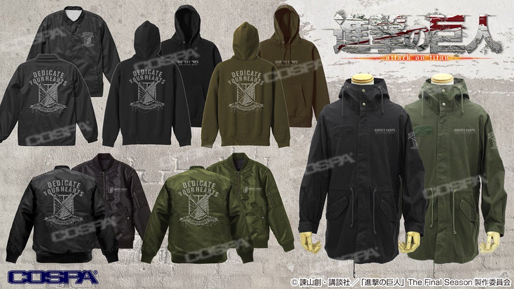 『進撃の巨人』心臓を捧げよ!「調査兵団」のM-51ジャケット、MA-1ジャケット、プルオーバーパーカー、コーチジャケットが新登場!【株式会社コスパ】