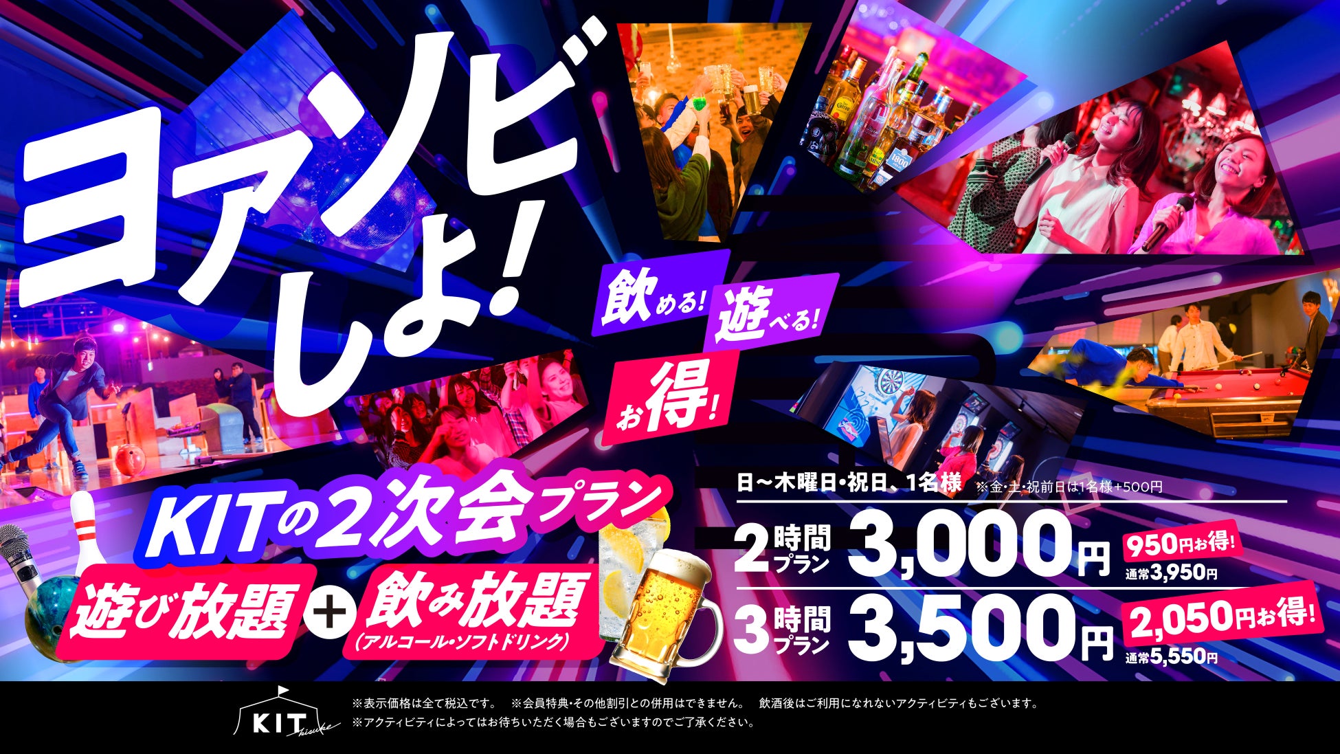 KITでは、ボウリング・カラオケ・ダーツ・ビリヤード・VR・卓球etcなど「遊び放題」+「飲み放題」の二次会プランが登場!!仲間や家族と特別な時間を楽しもう♫