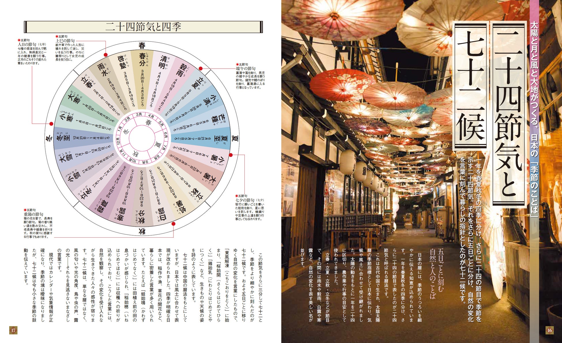 日本の暦、しきたり、日々の吉凶、季節の動植物、暮らしの歳時記を知れば、平凡な日常が毎日楽しくなる!! 本誌は、365日の暦と歳時記を網羅した「見ているだけで楽しい」ヴィジュアル・ムックです。
