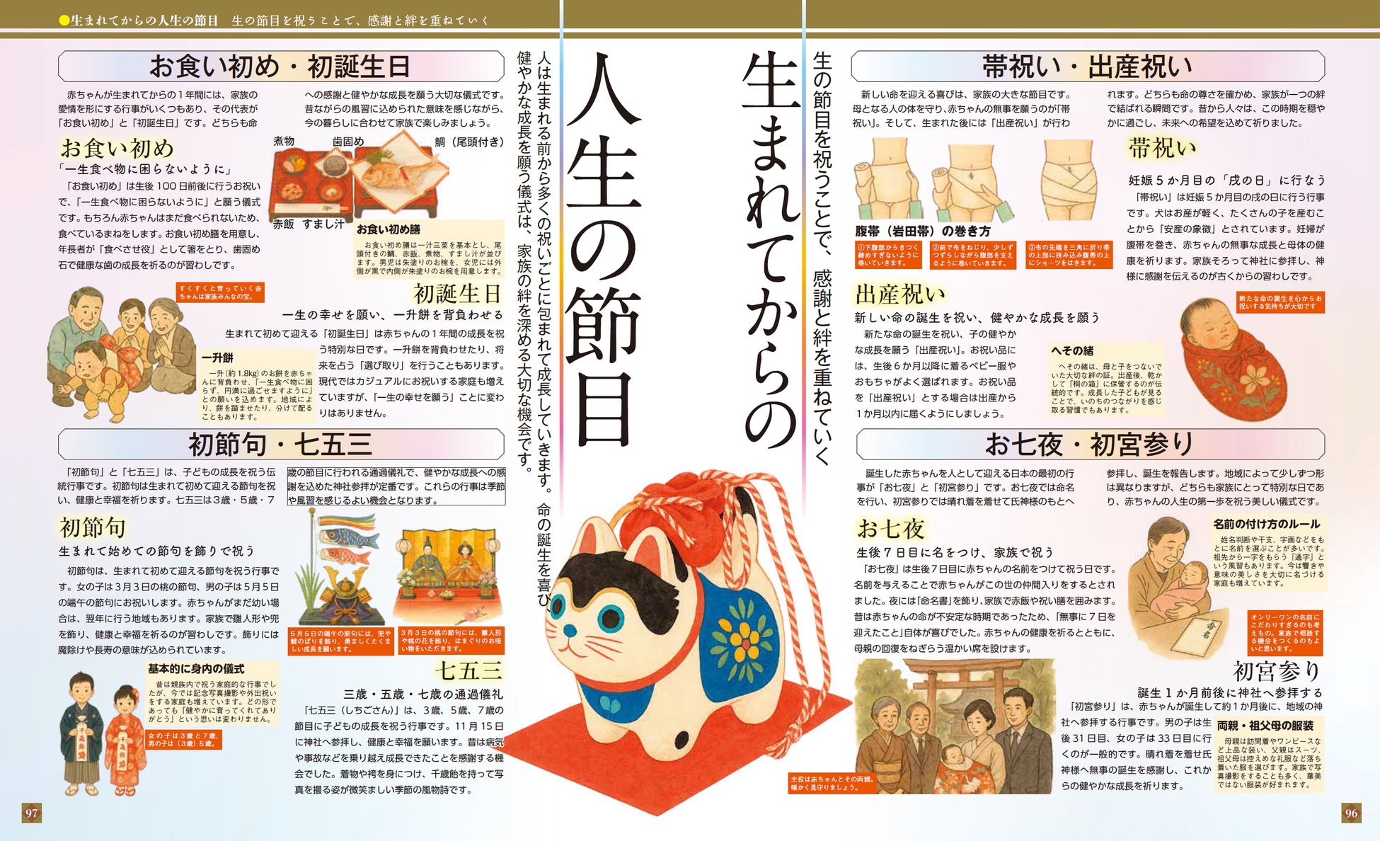 本誌後半は、日本のしきたりです。人生儀礼をはじめとして、冠婚葬祭での振る舞い、贈答の常識、日常の作法など、知っているようで知らなかったことをまとめてあります。これだけで、社会とのかかわり方や、礼儀が一段上に上がります。
