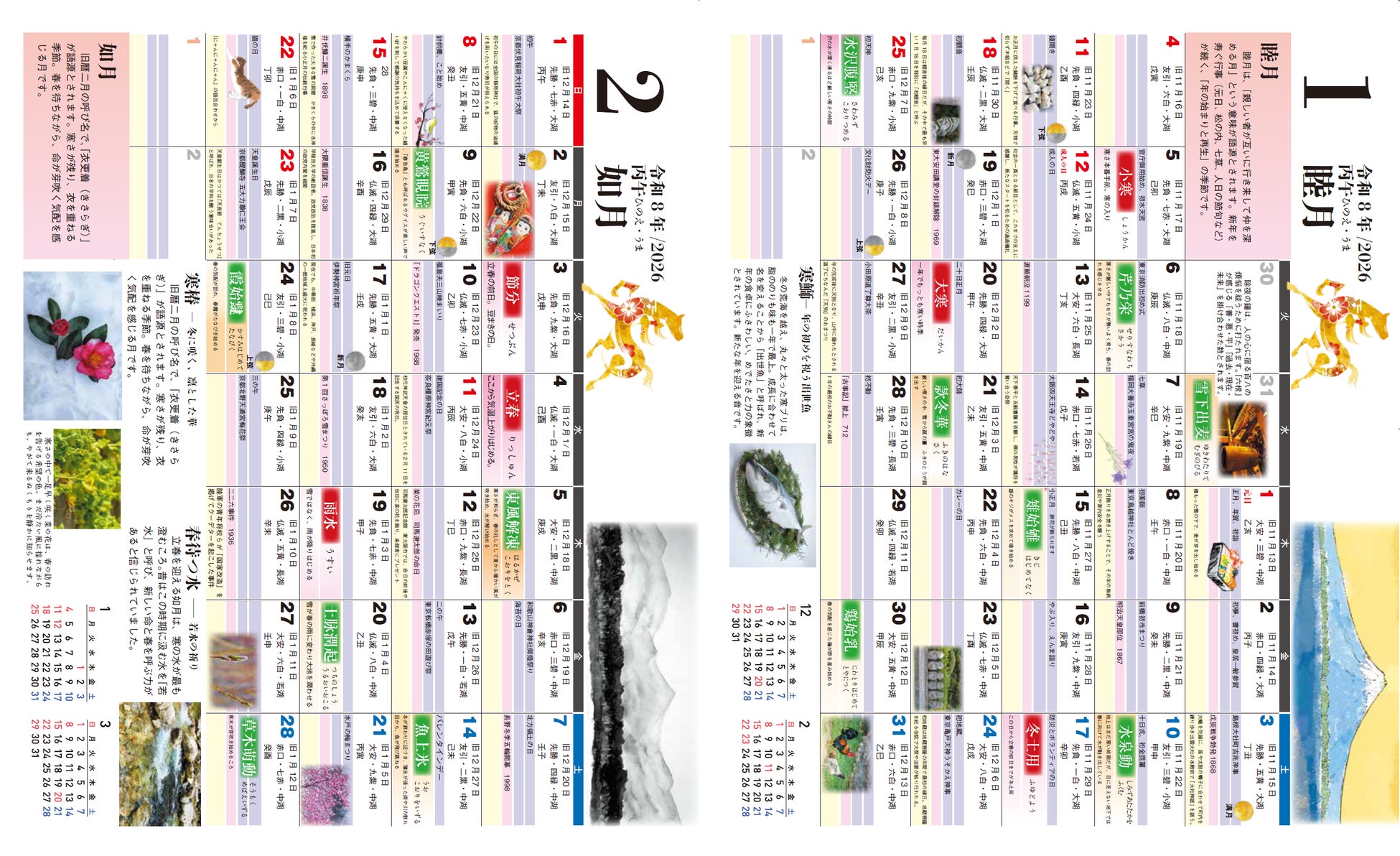 巻末には、2026年令和8年丙午のカレンダーを付録として付けました。市販の歳時記カレンダーは2000円くらいしますので、これだけでもお得です。日々のちょっとした歳時記チェックに生かしてください。