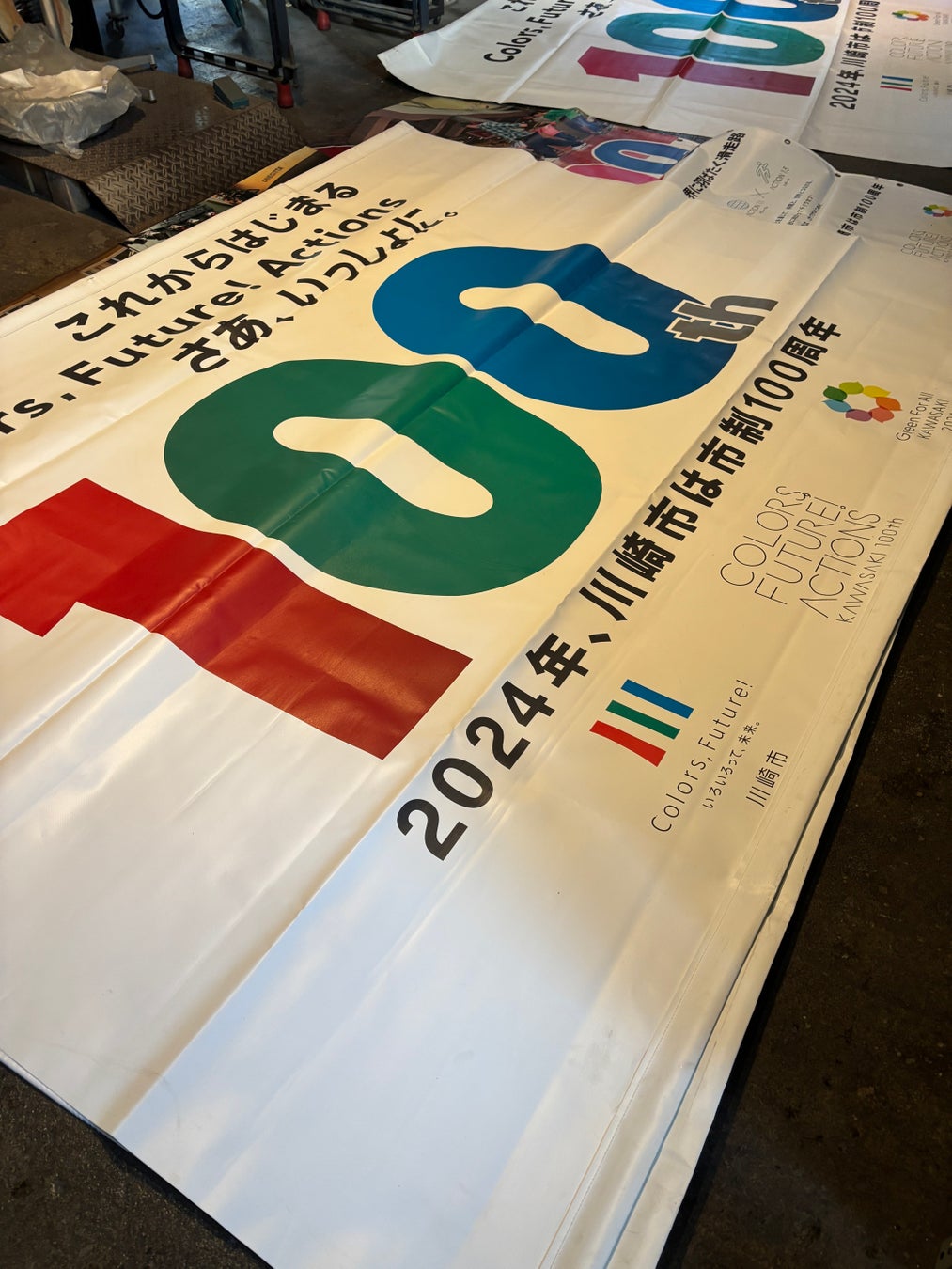 昨年から今年にかけて、川崎市市制100周年や全国都市緑化かわさきフェア開催の広報で、市内鉄道駅や公共施設で掲出した横断幕などを再活用するプロジェクトです。