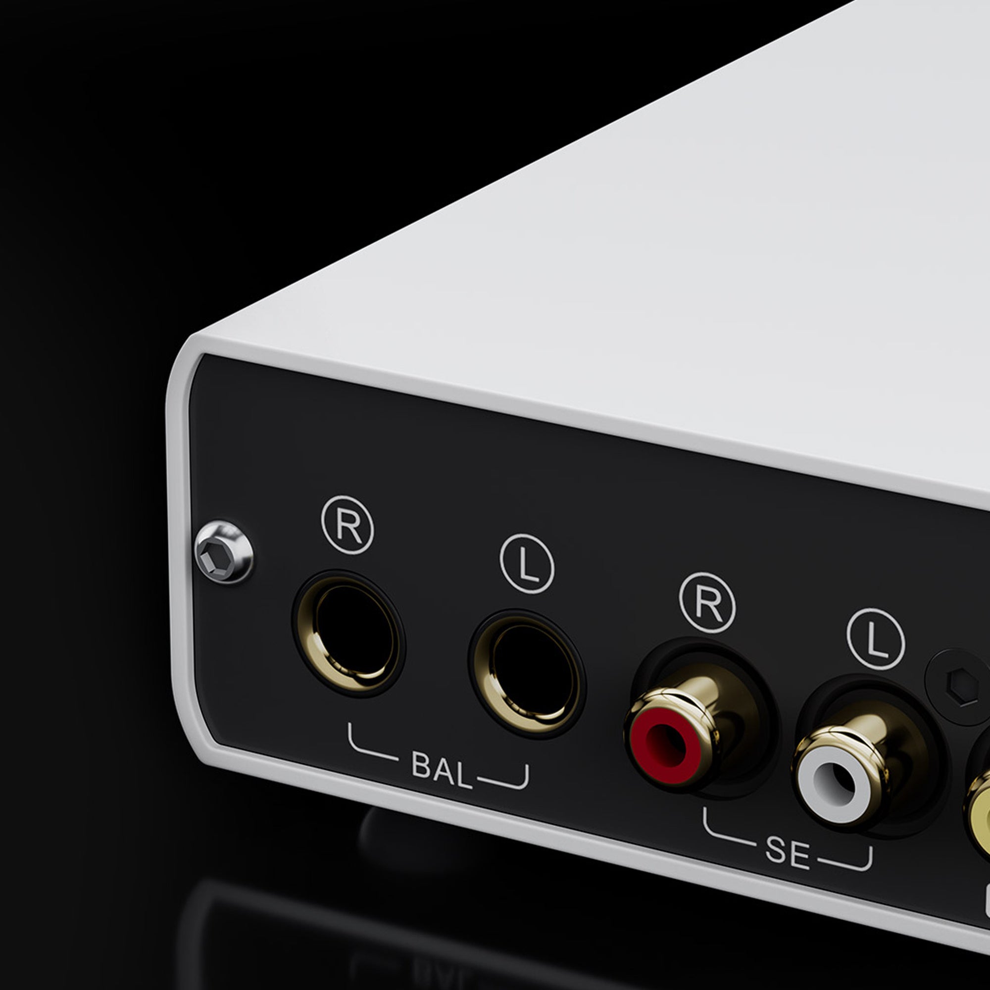 『E50II』はRCA出力(シングルエンド)と6.35mmTRS出力(バランス)の2系統を採用しており、どちらかの出力を単独で有効にすることも、両方の出力を同時に有効にすることも可能です。