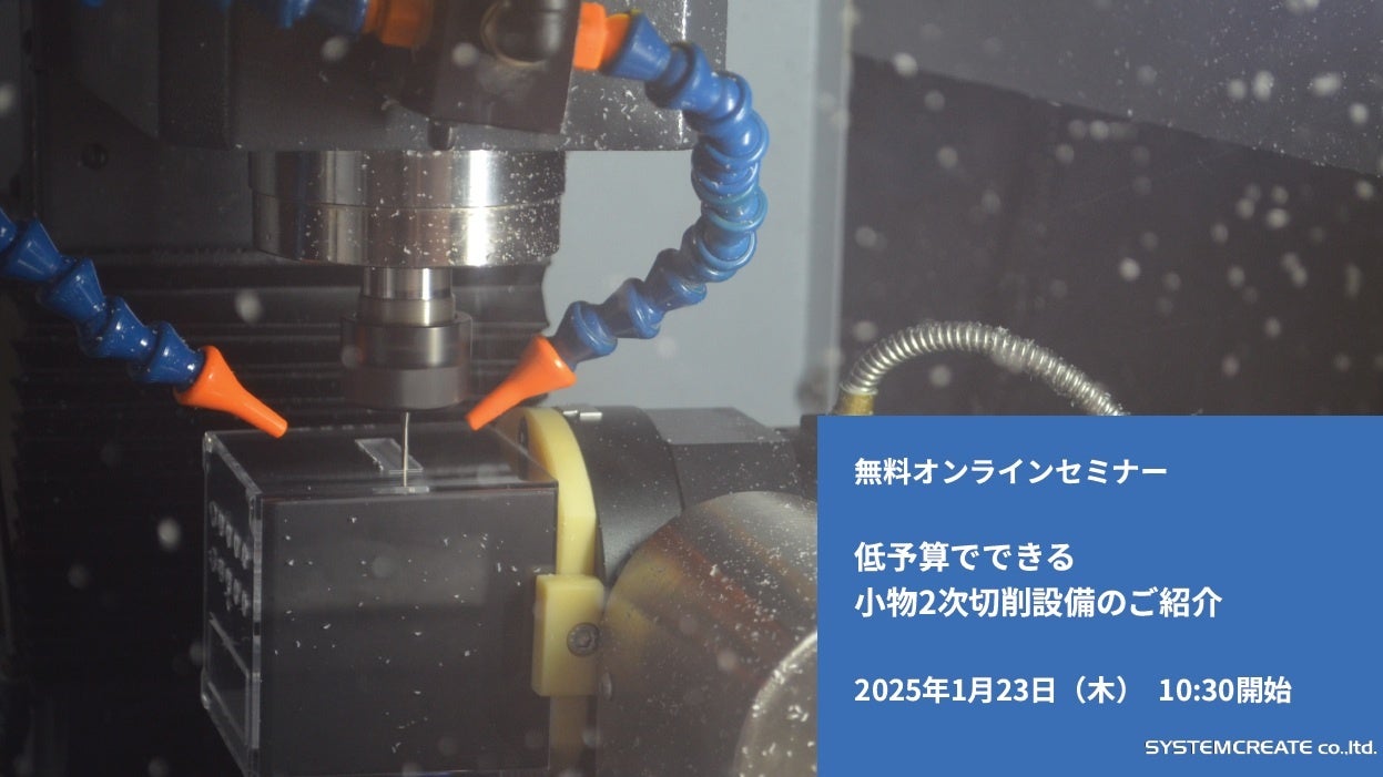 株式会社システムクリエイト(本社:大阪府東大阪市荒本新町、代表:川上正義)は、2025年1月23日(木)10:30に、無料オンラインセミナー「低予算でできる小物2次切削設備のご紹介」を開催いたします。