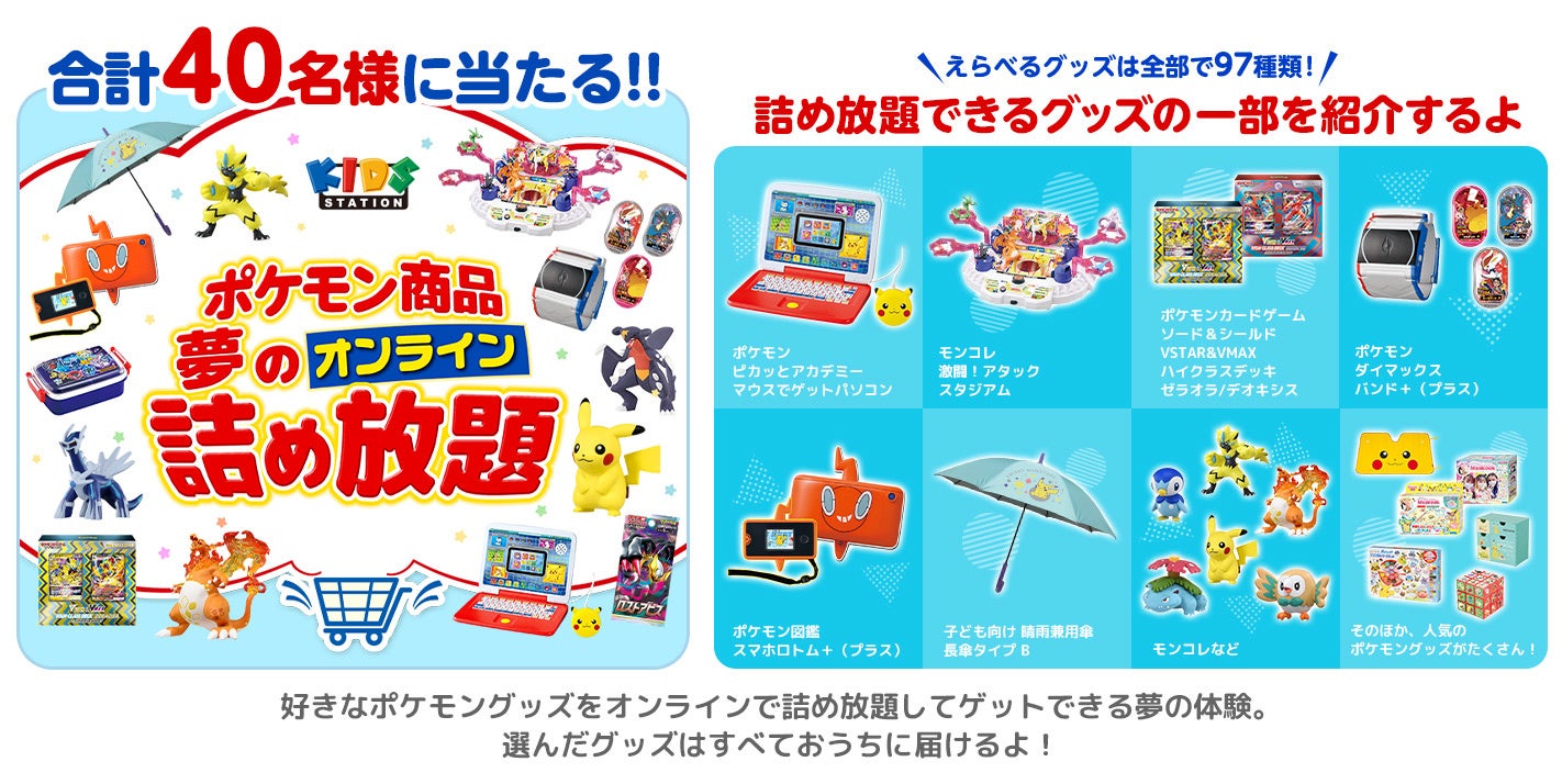 - 合計40名様に当たる!<ポケモン商品 夢のオンライン詰め放題>!!