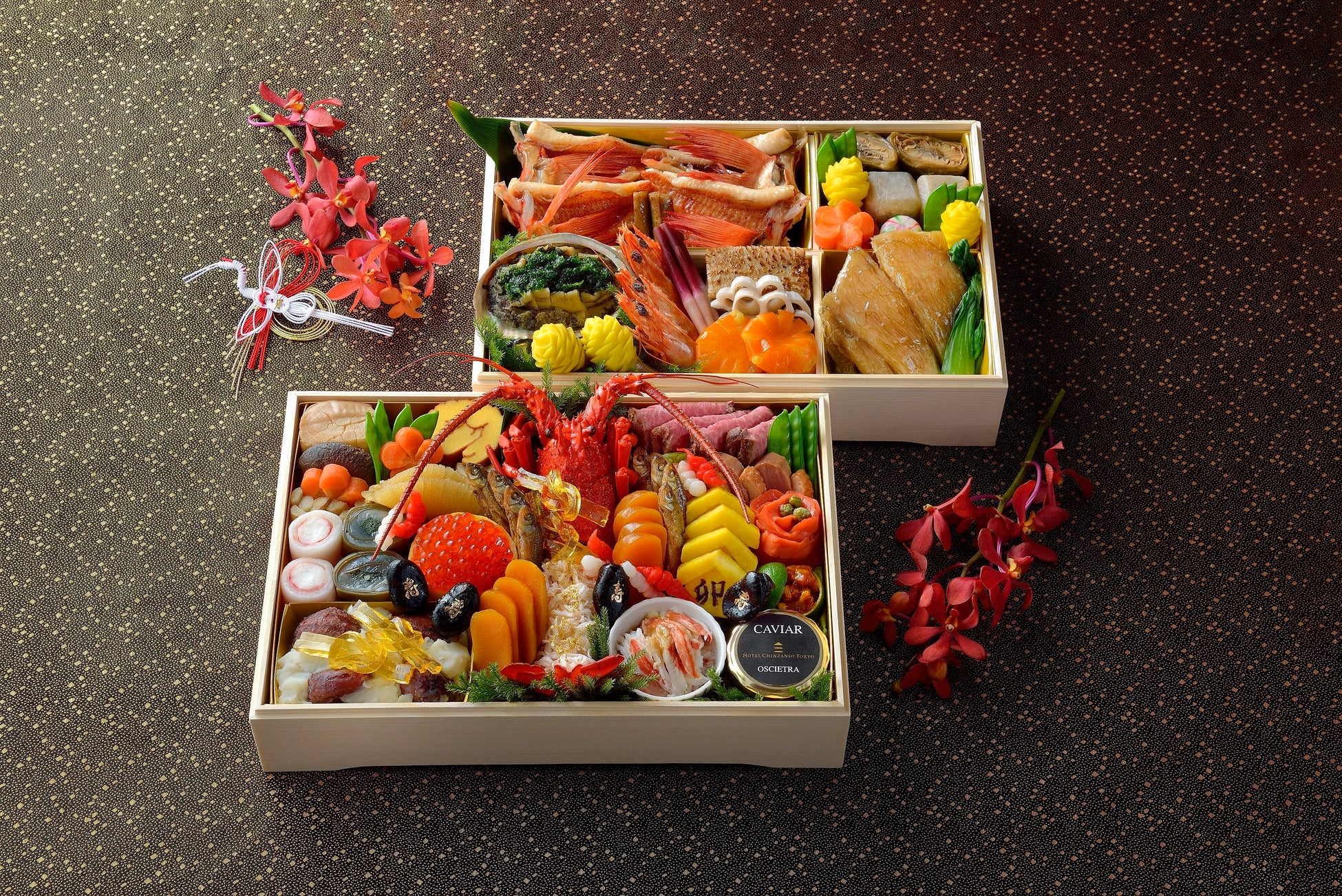 おせち料理3種類は、毎年ご好評の和洋三段重「雅(みやび)」と和風二段重の「彩(いろどり)」に加え、昨年ご提供を開始した料亭「錦水」調理長が素材を吟味した新年の幕開けにふさわしい豪華なおせち「ホテル椿山荘東京 料亭『錦水』特選おせち料理」を二段重にして40台限定で販売いたします。