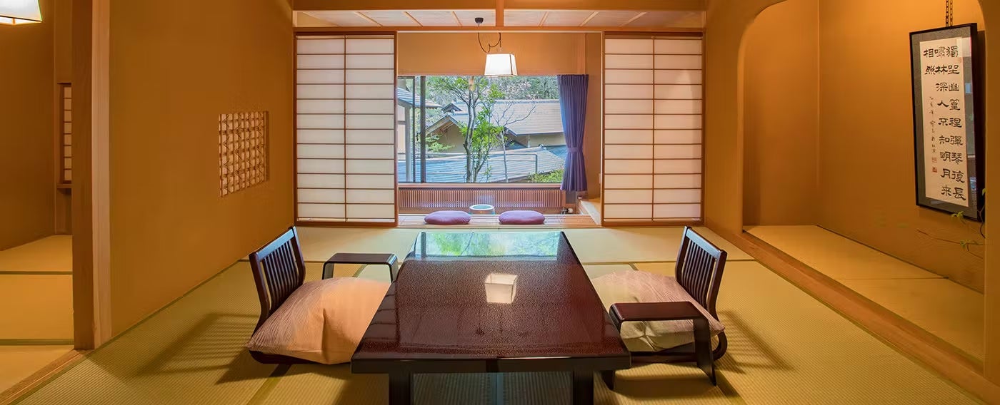 全11部屋の客室は端正な数寄屋造りを基調にしており、すべて設えが異なります。他の畳より20%広い純京間サイズを使用しており、各部屋に床の間、縁側または広縁が設けられ、部屋の窓からは四季折々の風景が望めます。