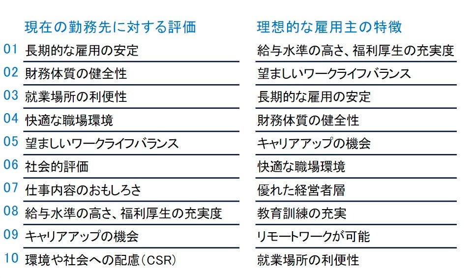 健全なワークライフバランスが給与水準の高さと並び最優先事項のトップに