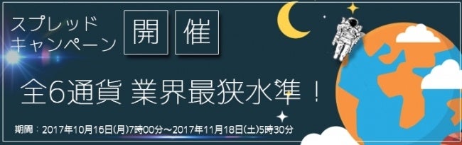 SBI FXトレード株式会社は、2017年10月16日(月)午前7時より、6通貨ペアのスプレッドについて、100万通貨ペアまで業界最狭水準に縮小するキャンペーンを開催しておりますのでお知らせいたします。
