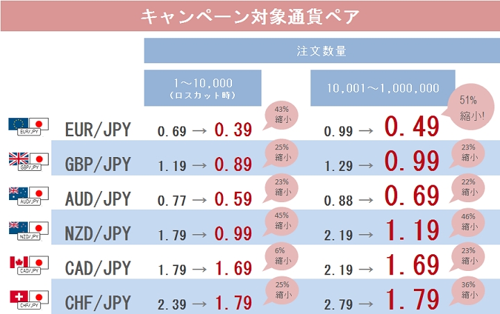 6通貨ペアが業界最狭水準に!