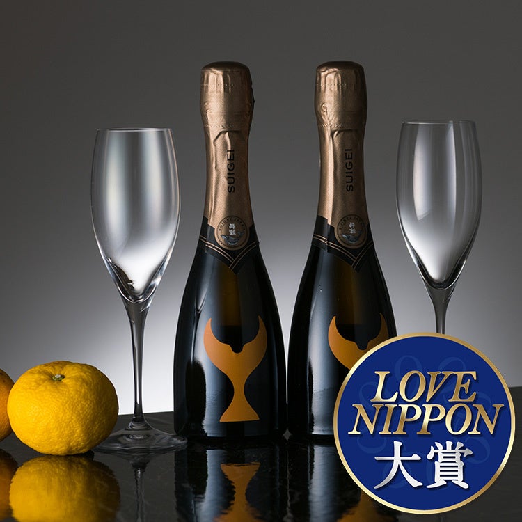 収穫したて「高知の柚子」。華やかな香りを、高知が誇る蔵元の純米大吟醸に閉じ込めたプレミアム泡!藤巻独占販売の酔鯨酒造「初スパークリング」。