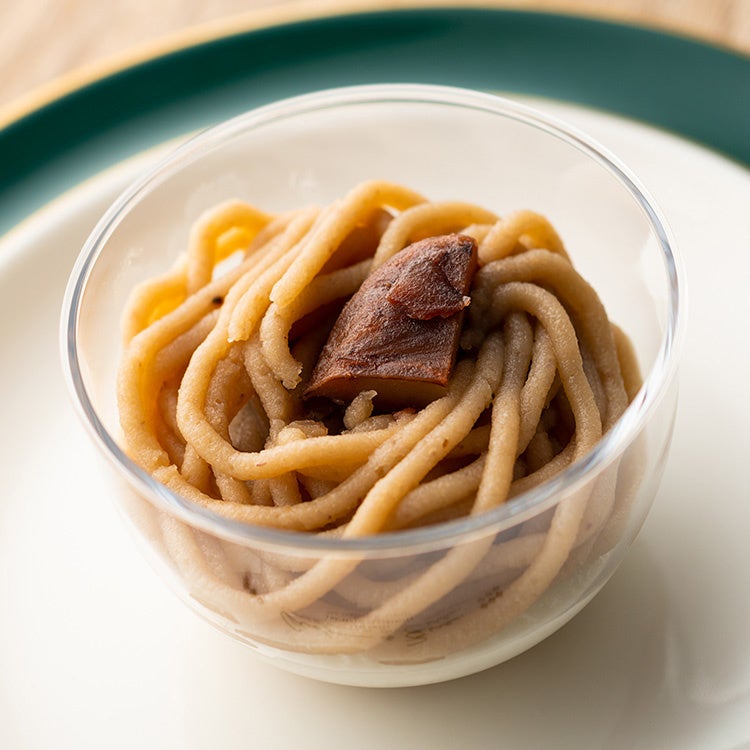 高知・四万十の絶品和栗を贅沢に使用。一般的なスポンジの底生地もブランデーも一切ナシの、ほぼ“栗”だけでできた驚きのモンブラン。メロンを上回る糖度を誇るというしまんと地栗で作られたモンブランクリームと無糖の生クリームの絶妙なハーモニーを楽しんで。