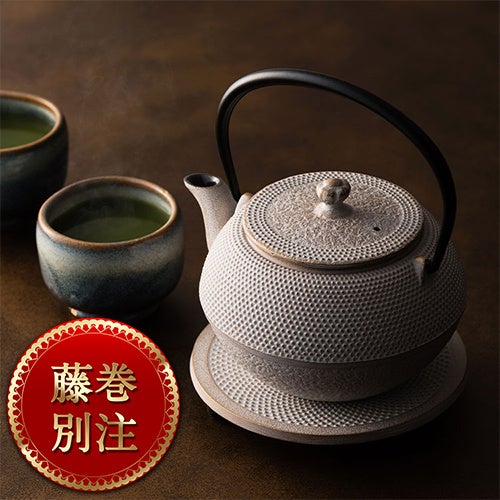 【OIGEN】南部鉄器急須 まろみアラレ/別注「ホワイトピンクゴールド」&瓶敷/アラレ14cmセット