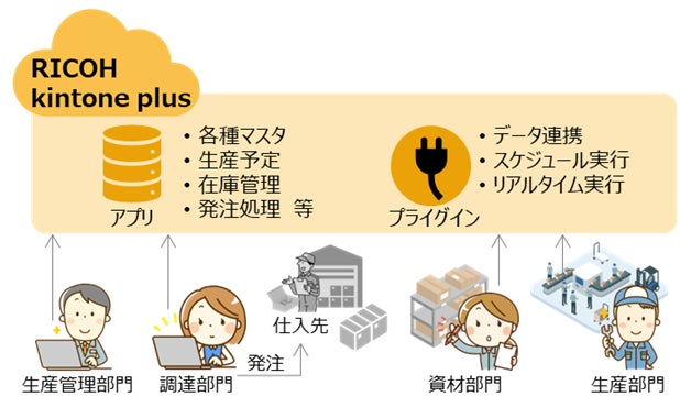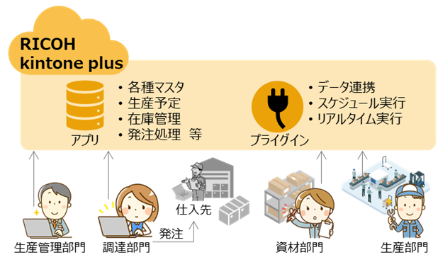 両モデルをRICOH kintone plus上で連携することで、製造から流通工程までの在庫情報を一元管理でき、業務効率化と適正在庫の維持、さらにはコスト削減を通じて、持続可能な製造・物流体制の構築を実現します。