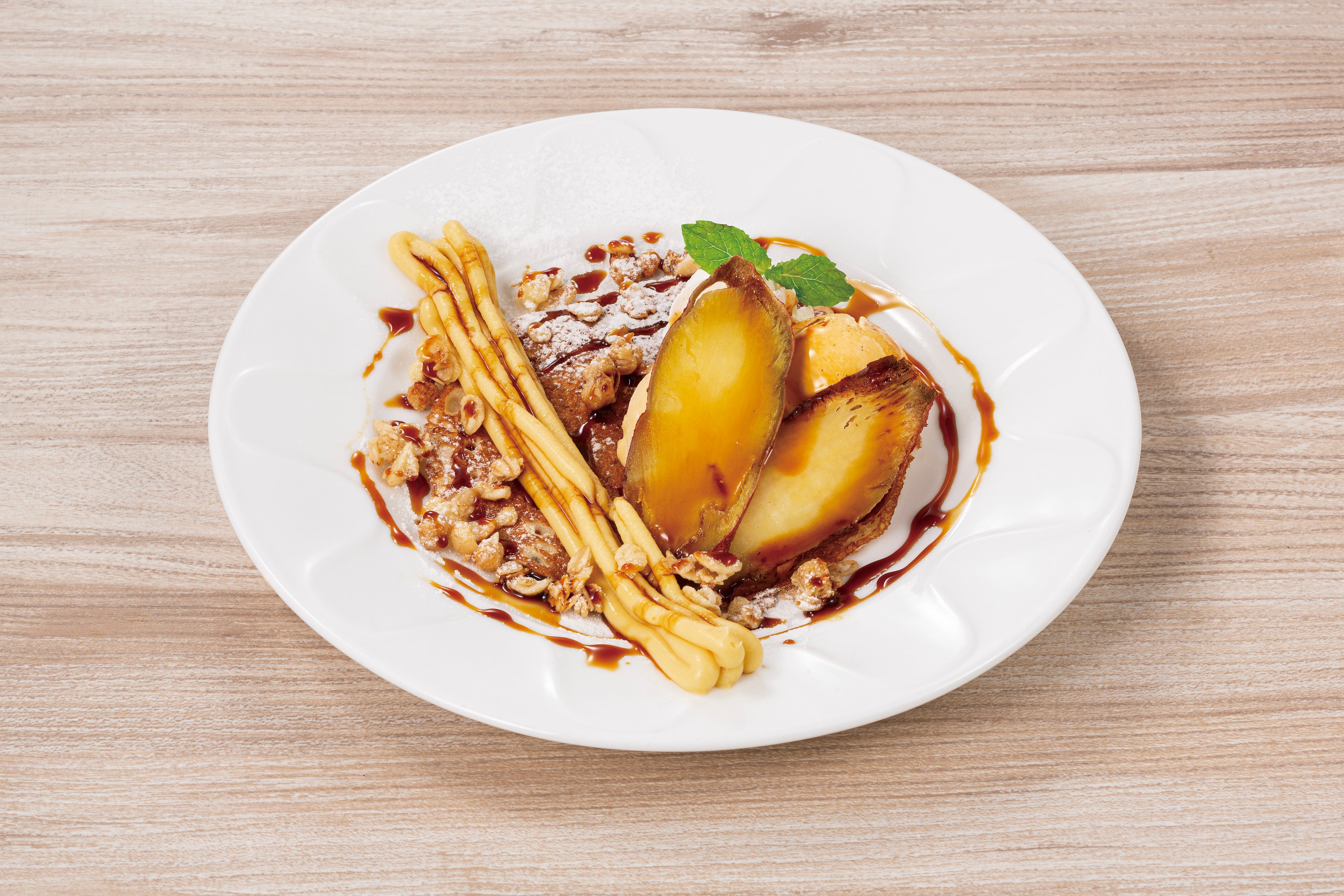 人気の自家製ガレットを、焼きいもや安納芋ペーストで秋色にデコレーション。ほんのりバターが香るガレット