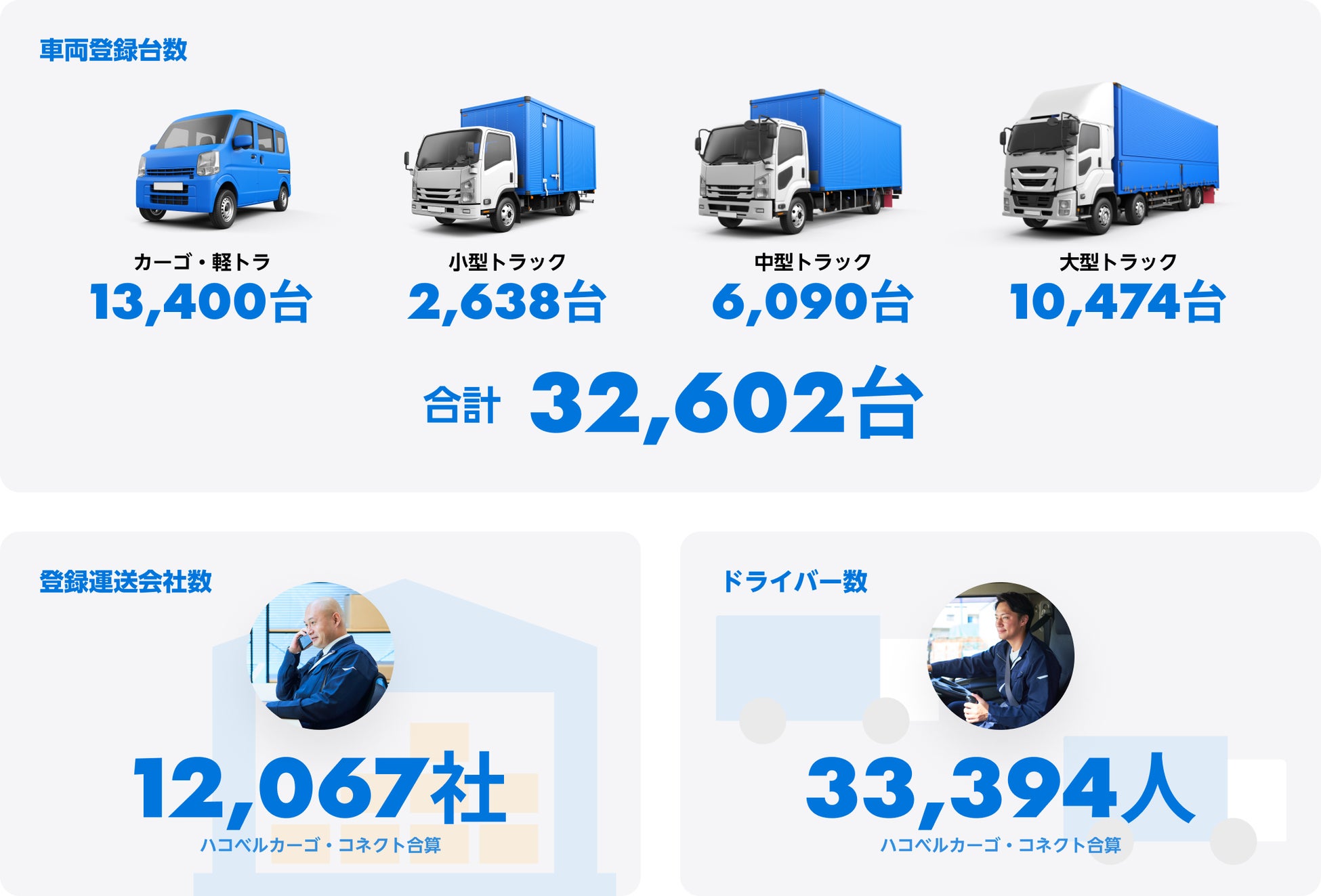 また登録車両台数・登録ドライバー数ともに昨年と比較して約1万件以上増加し、3万件を突破しており、さらに盤石な物流網の提供を実現しております。