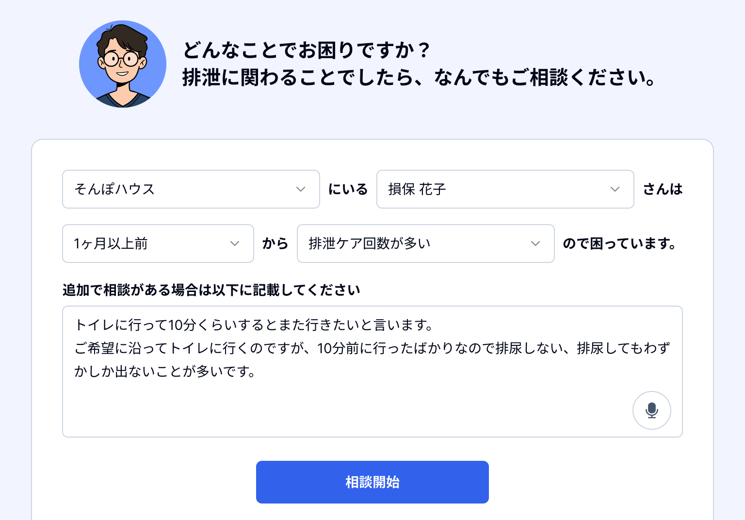 「教えて!排泄ケア」は、多くの介護職員が特に現場負荷が高いと感じている排泄ケア領域に特化したサービスです。