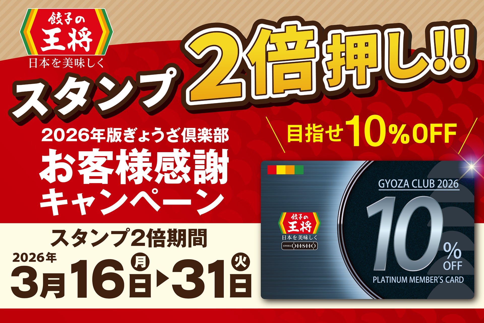 この度、3月16日(月)から3月31日(火)の期間限定で、「2026年版 ぎょうざ倶楽部 お客様感謝キャンペーン」のスタンプを、