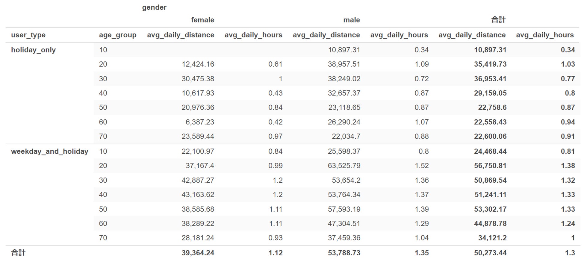 ・性別で比較すると、男性の移動距離が女性よりも長い傾向が確認された