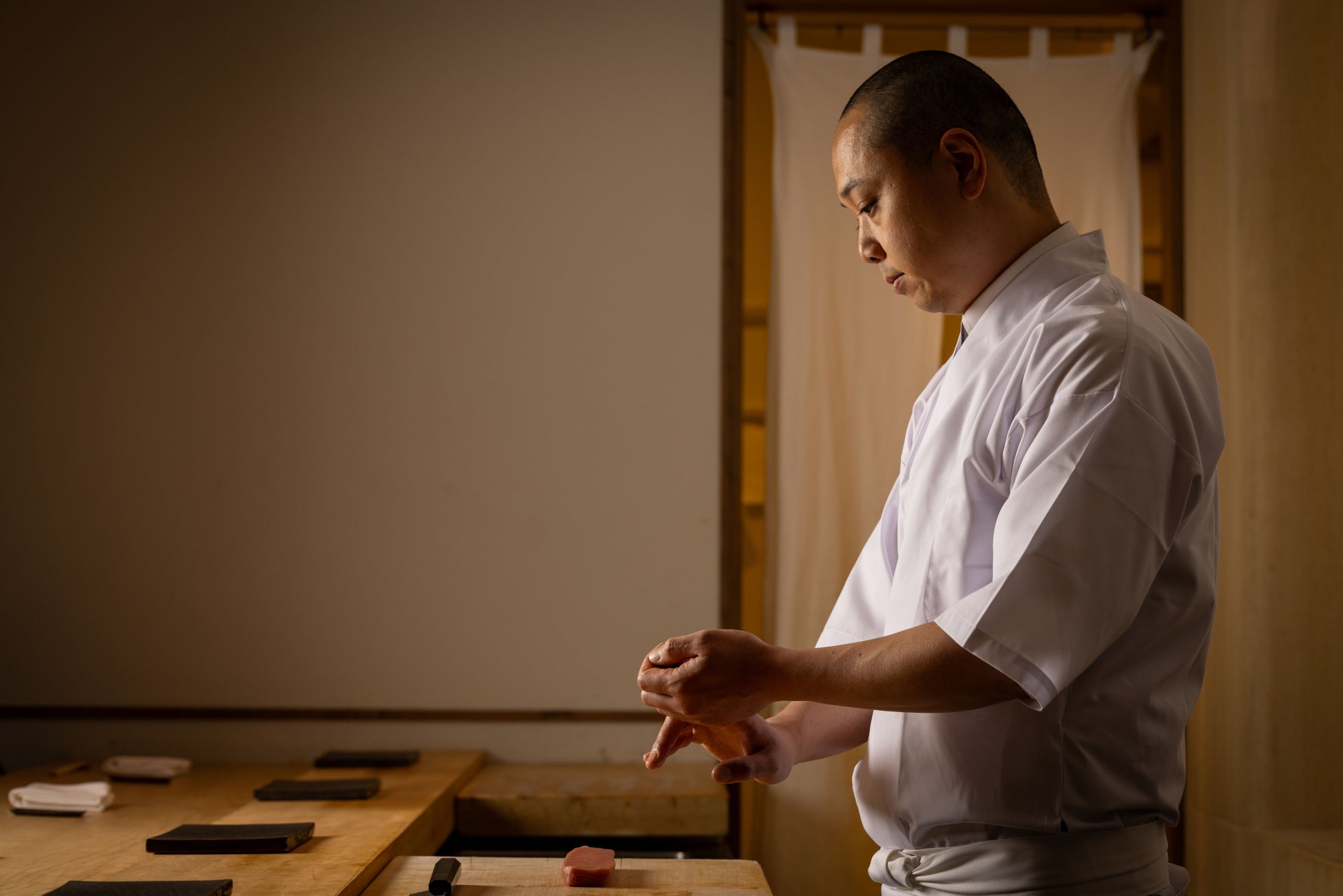 神楽坂の鮨割烹で経験を積んだ後、オーストラリア シドニーに渡り、日本人にも外国人にも通用する鮨が握れる板前としてEstablishment HOTEL内の『SUSHI-E』にて板前として勤務した。同国で2店舗の経営に7年間携わり、2020年に帰国。赤坂の『鮨 以とう』系列の吉祥寺エクセルホテル東急内 『一路』の副料理長として活躍する。2023年10月にGENTLEの鮨処 板長に着任。豊富な経験を活かし、産地直送の新鮮な魚を中心とした新たなメニューを開発し、今までのGENTLE Sushi Barとは一味違う鮨を提供する。