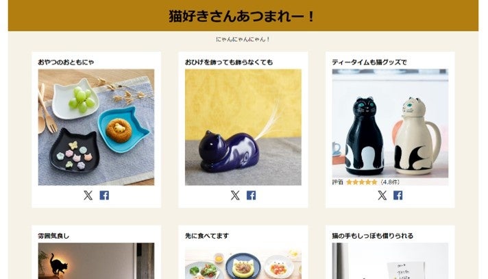2月22日(ニャンニャンニャン)は、ねこ好きには言わずと知れた「猫の日」です。特設サイトでは、猫モチーフ入りのグッズなど猫を身近に感じられる雑貨等と、更に現在猫と共に生活を送る方には、愛しい猫との生活がもっと快適で楽しくなるような実用商品を取りそろえています。
