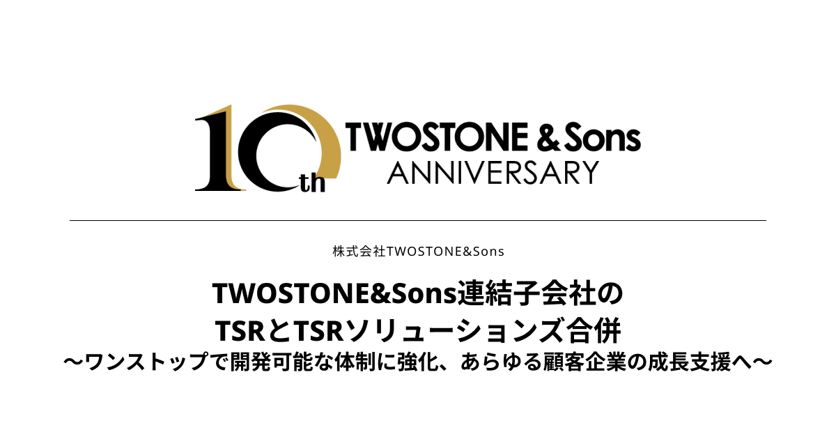 TWOSTONE&Sons連結子会社のTSRとTSRソリューションズ合併