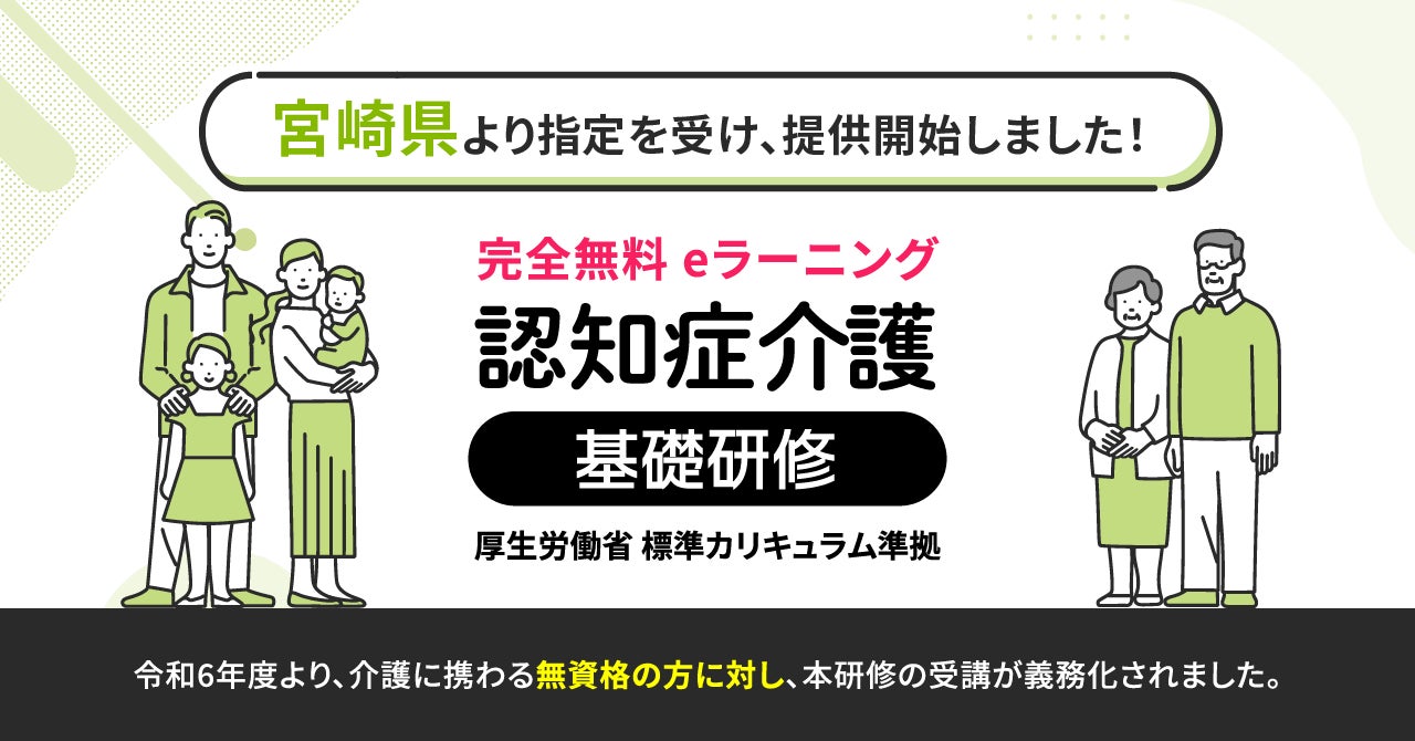 認知症介護基礎研修 宮崎県より指定を受け、無料提供を開始しました。