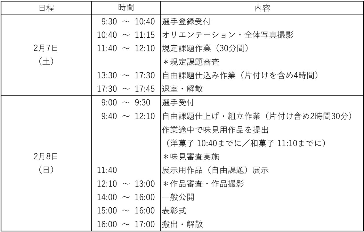 【出場対象】厚生労働大臣または都道府県知事が指定する全国の製菓衛生師養成施設の在籍者で