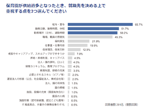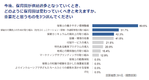 昨今、保育士の労働環境改善が叫ばれていますが、今後の保育園のあり方として、現場で働く保育士が「働きやすい労働環境整備」を求めていることがより一層顕著となりました。