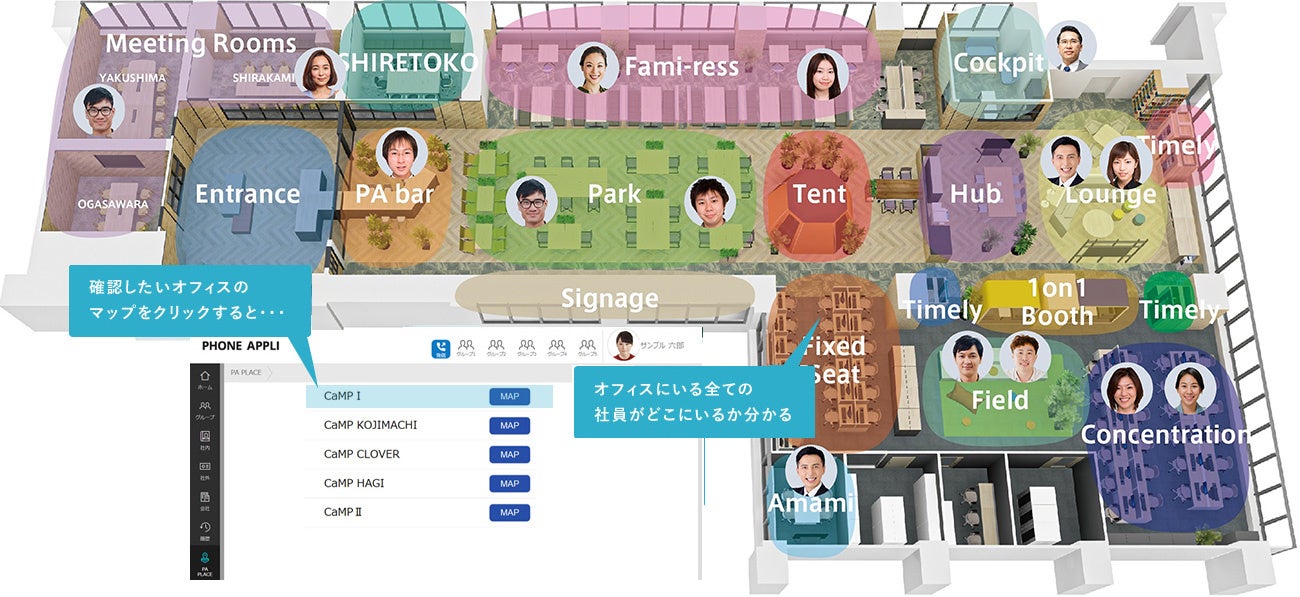 Cisco Meraki等と連携して、従業員の居場所表示が可能