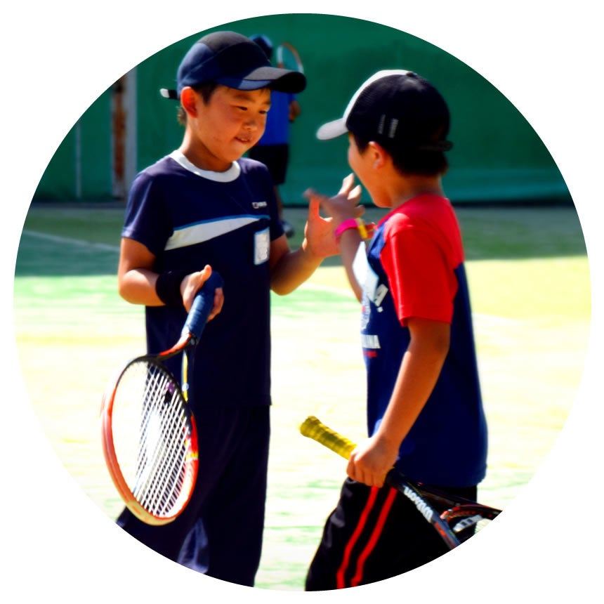 テニスは、走る、跳ぶ、止まる、ひねるといった、様々な競技にも通じる基本的な運動技能を養うことができるスポーツです。
