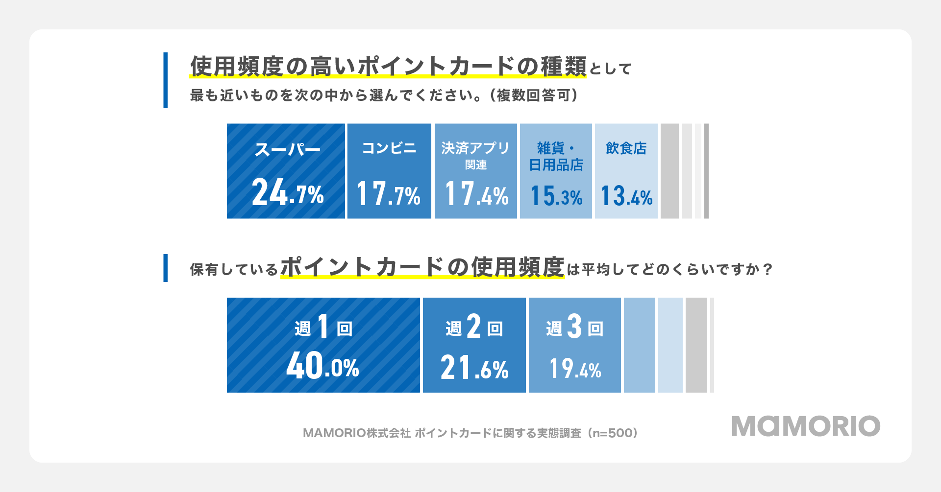 MAMORIO株式会社(本社:東京都千代田区、代表取締役:増木大己、以下MAMORIO社)はポイントカードに関する実態調査のため、10代~70代の男女500名を対象にインターネットにてアンケート調査を行いましたのでお知らせいたします。