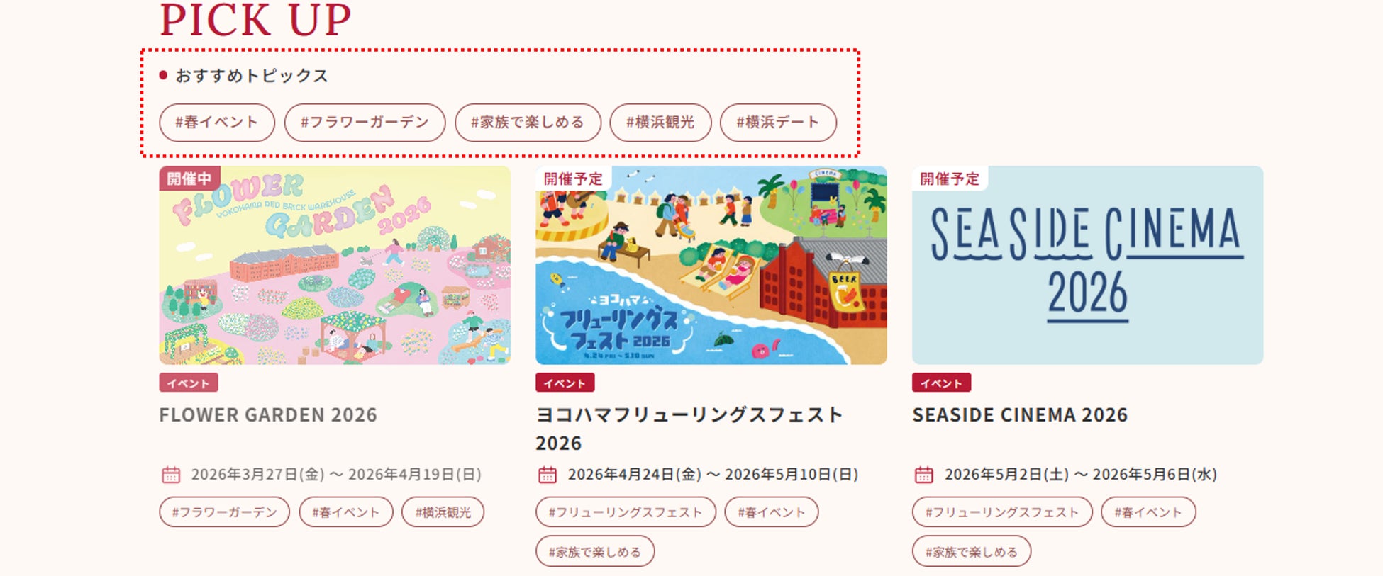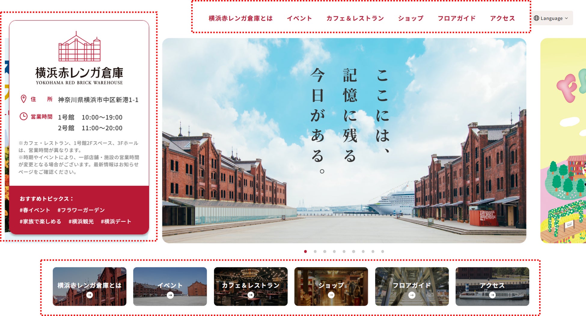 横浜赤レンガ倉庫の世界観を大切にしながら、見やすく、親しみのあるデザインに一新しました。