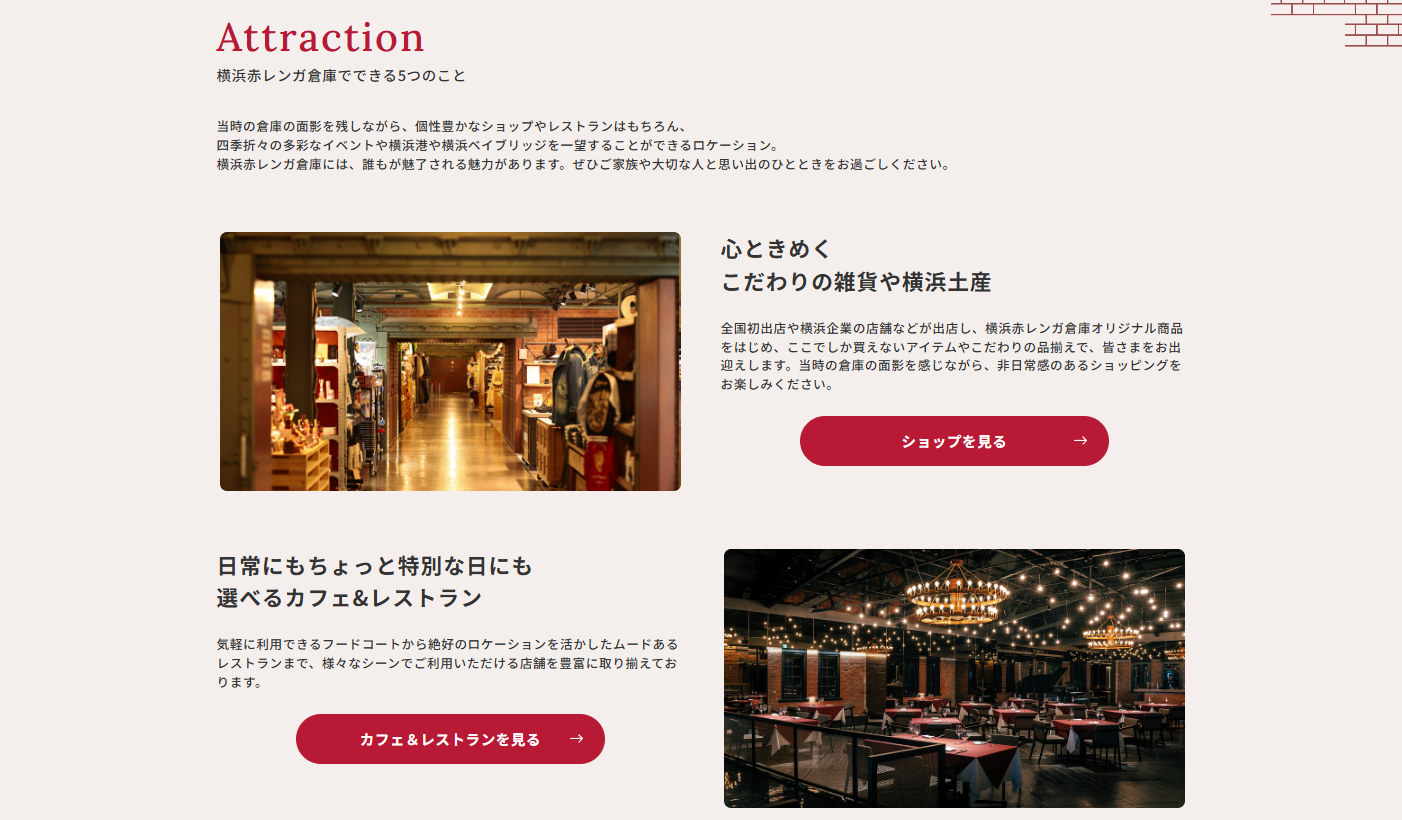 ●横浜赤レンガ倉庫の魅力ページを拡充