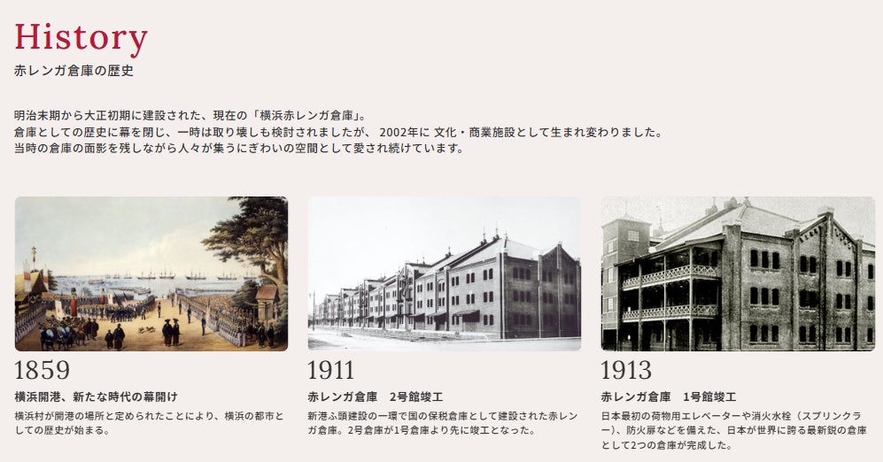 赤レンガ倉庫の歴史や魅力をより深く知っていただくため、これまでの変遷や横浜赤レンガ倉庫の魅力をまとめたページを拡充しました。