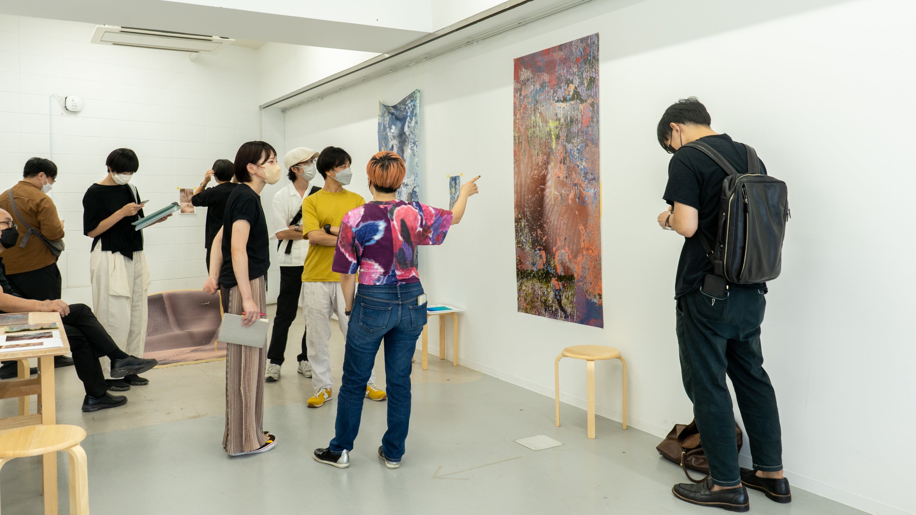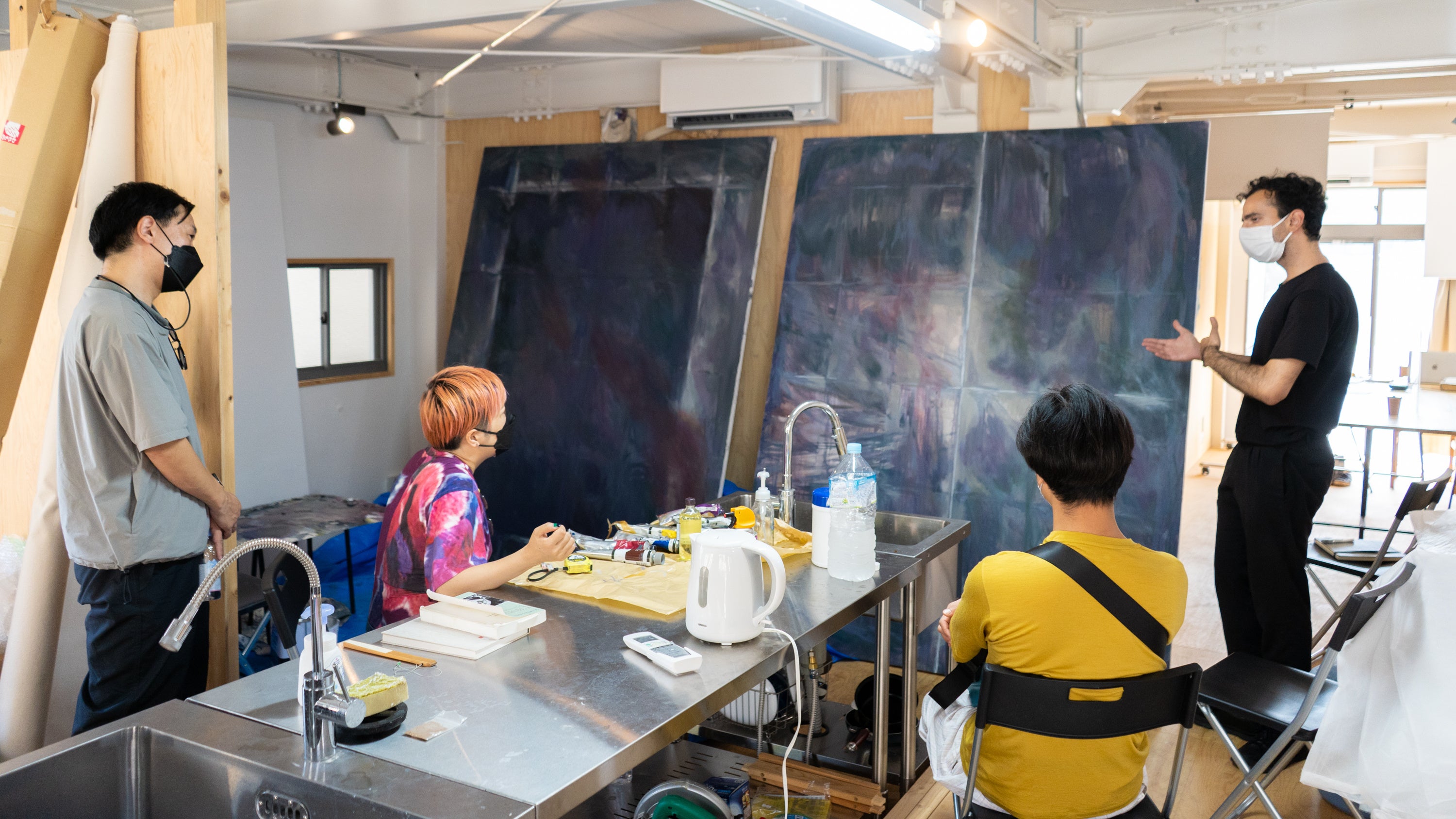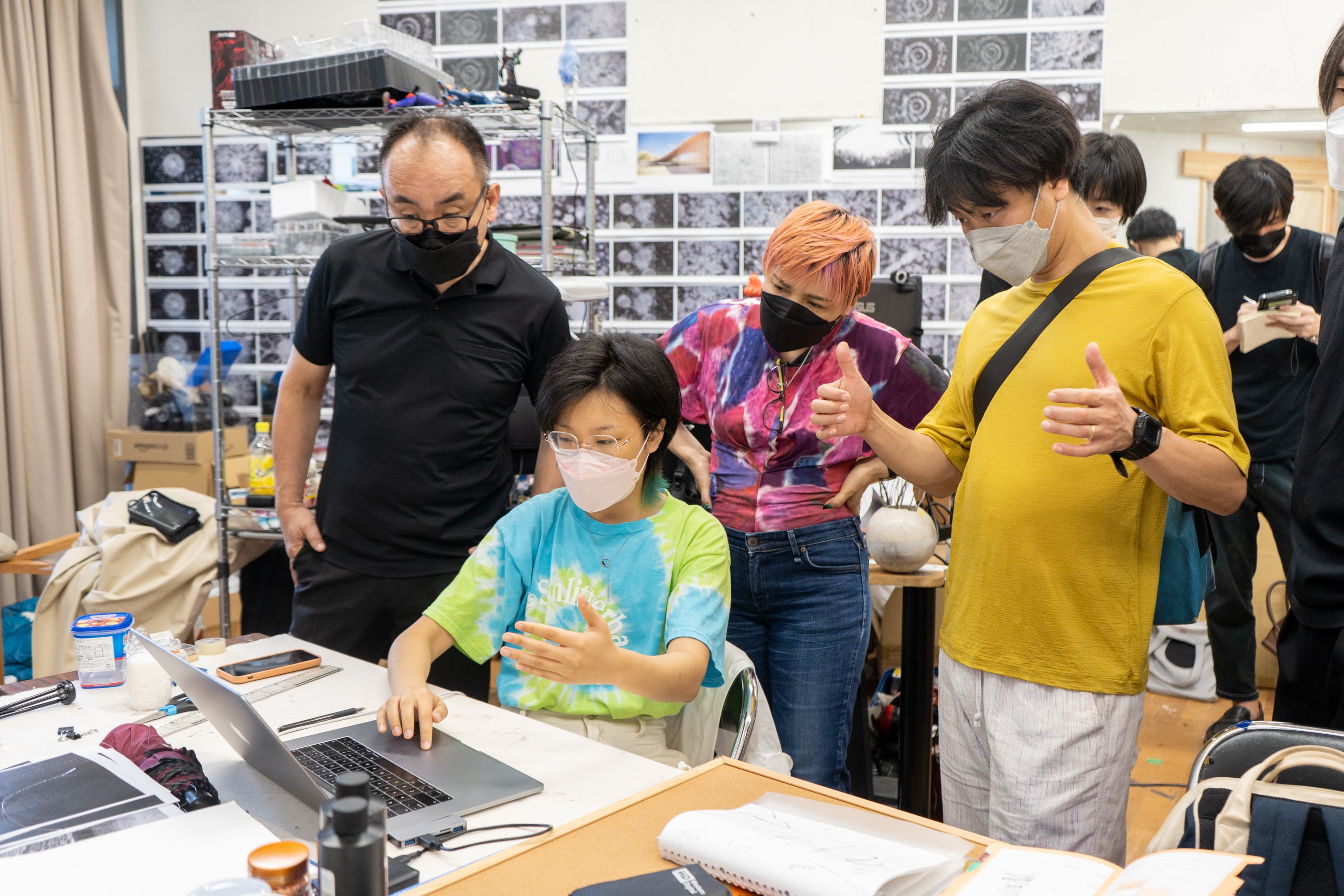 キュレーターから直接指導を受ける作家の様子。