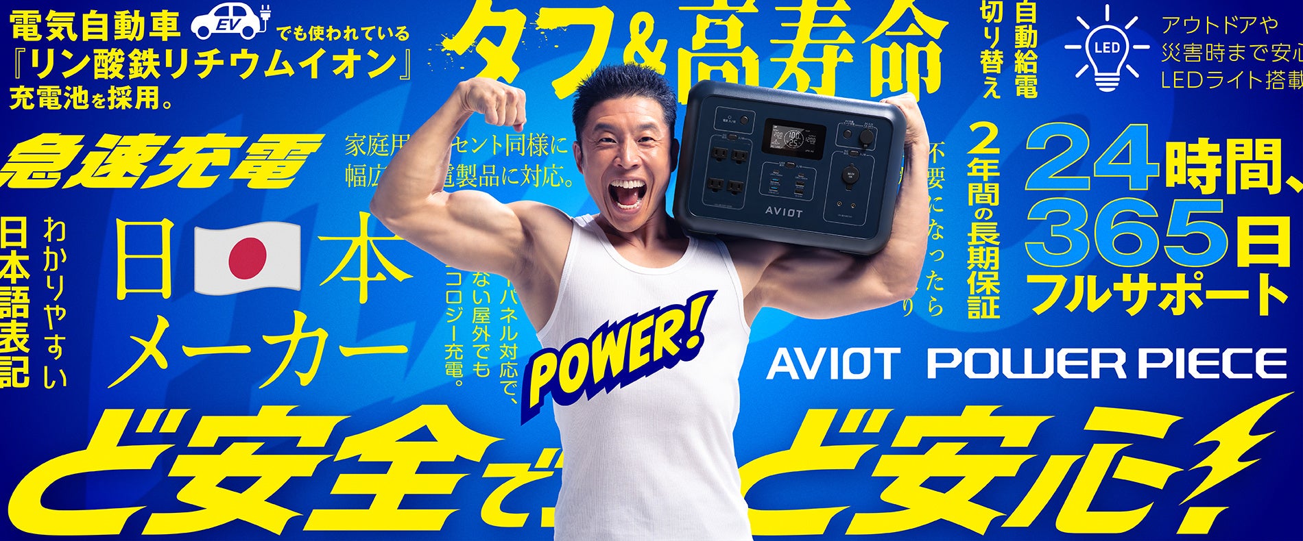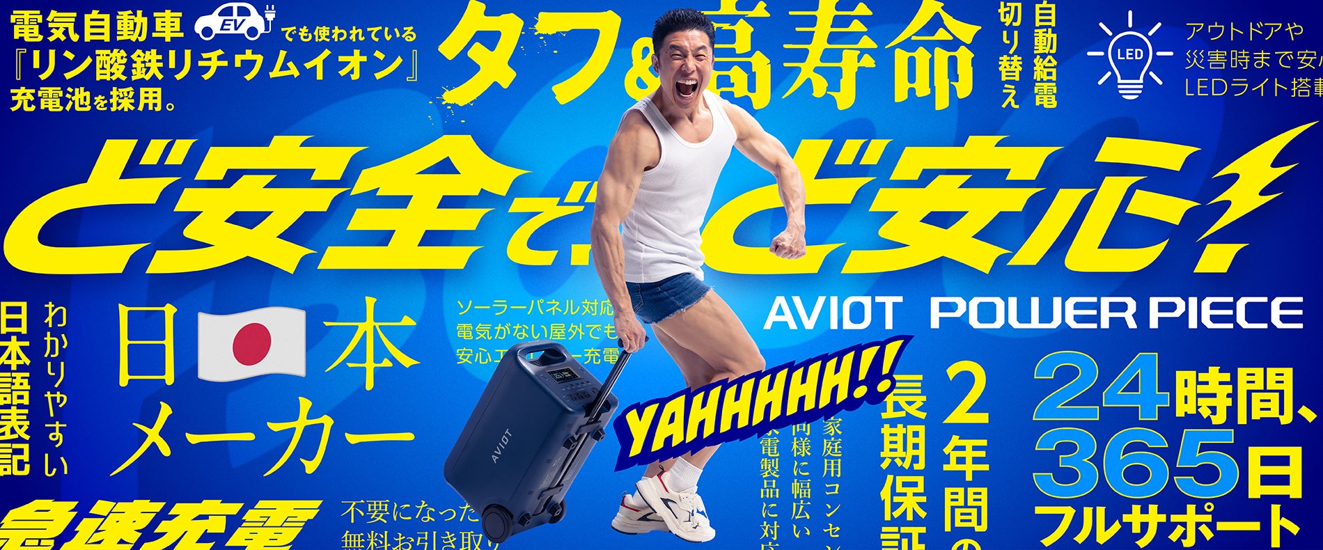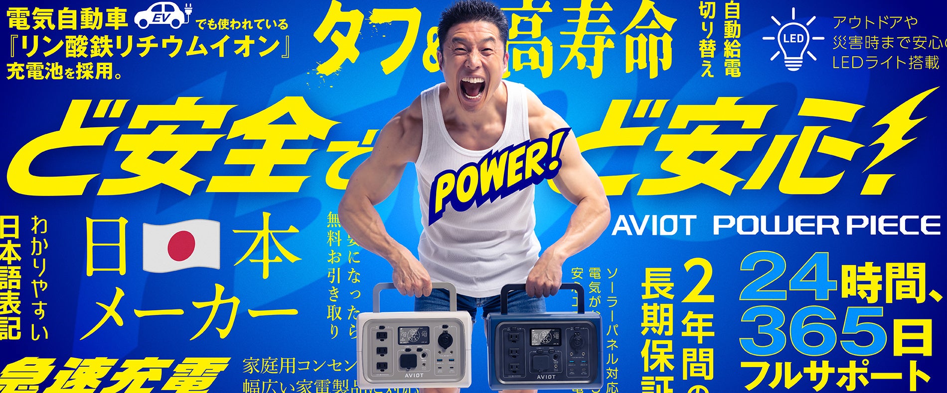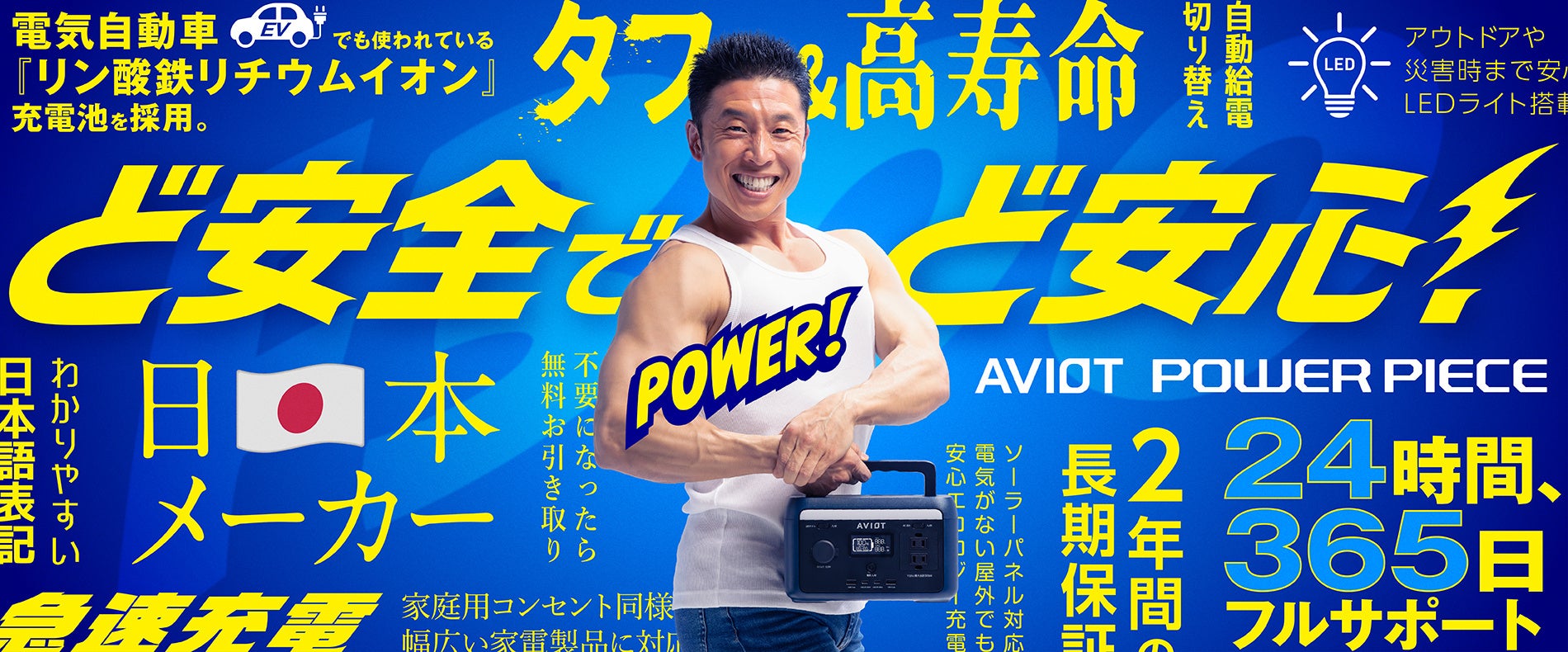 【AVIOT】ポータブル電源シリーズ“AVIOT POWER PIECE“人気お笑い芸人、なかやまきんに君がイメージキャラクターに就任