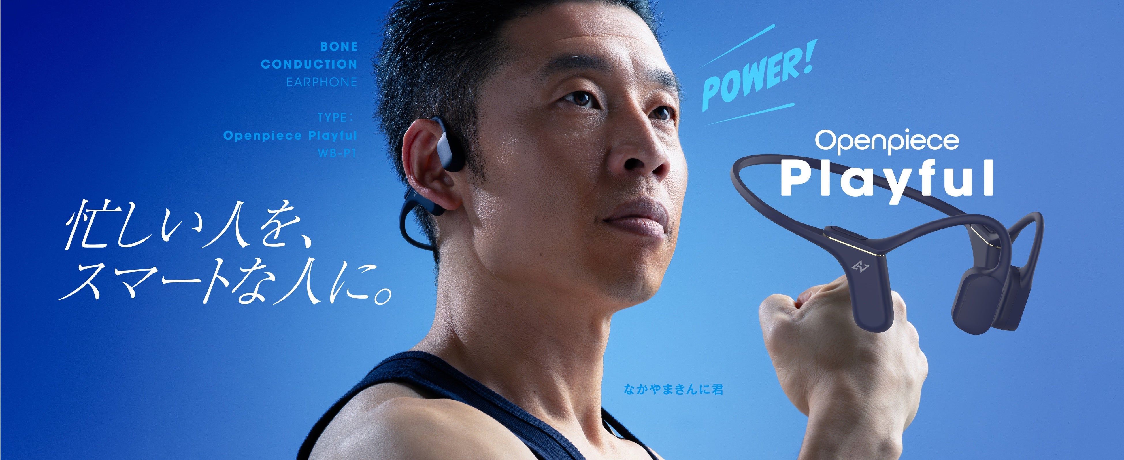 さらに、対象商品を期間中に購入すると、骨伝導イヤホンをつけたなかやまきんに君の精悍なビジュアルが映えるスペシャルパッケージに加え、完全新録のボイスガイダンスを搭載した特別仕様の”なかやまきんに君コラボ骨伝導イヤホン(WB-P1-NKN)”が毎月50名様に抽選で当たるキャンペーンも開始いたします。