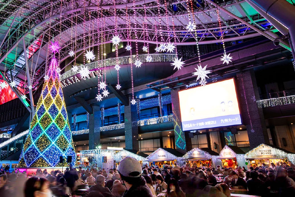 2023年6月にグランドオープンした福岡大名ガーデンシティ。初めての迎えるクリスマスのイルミネーションをホットワインやフードと一緒に満喫いただけます。また会場ではコンサートも行われ、子供から大人まで楽しむことができます。