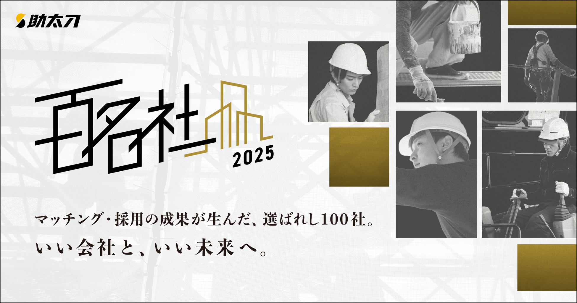 国内最大級の建設人材マッチングプラットフォームを運営する株式会社助太刀(所在地:東京都新宿区、以下「当社」)は、工事会社と職人のビジネスマッチングサービス「助太刀」や建設特化の求人サービス「助太刀社員」において、優れた成績を収めた工事会社100社を「助太刀 百名社2025」として選出・公開したことをお知らせいたします。
