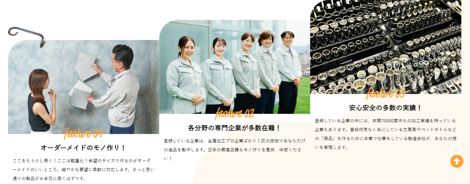 趣味や仕事で使う道具や部品をオーダーメイドで製造依頼し、自身の欲しいアイテムを作ってくれる企業を選ぶことができます。